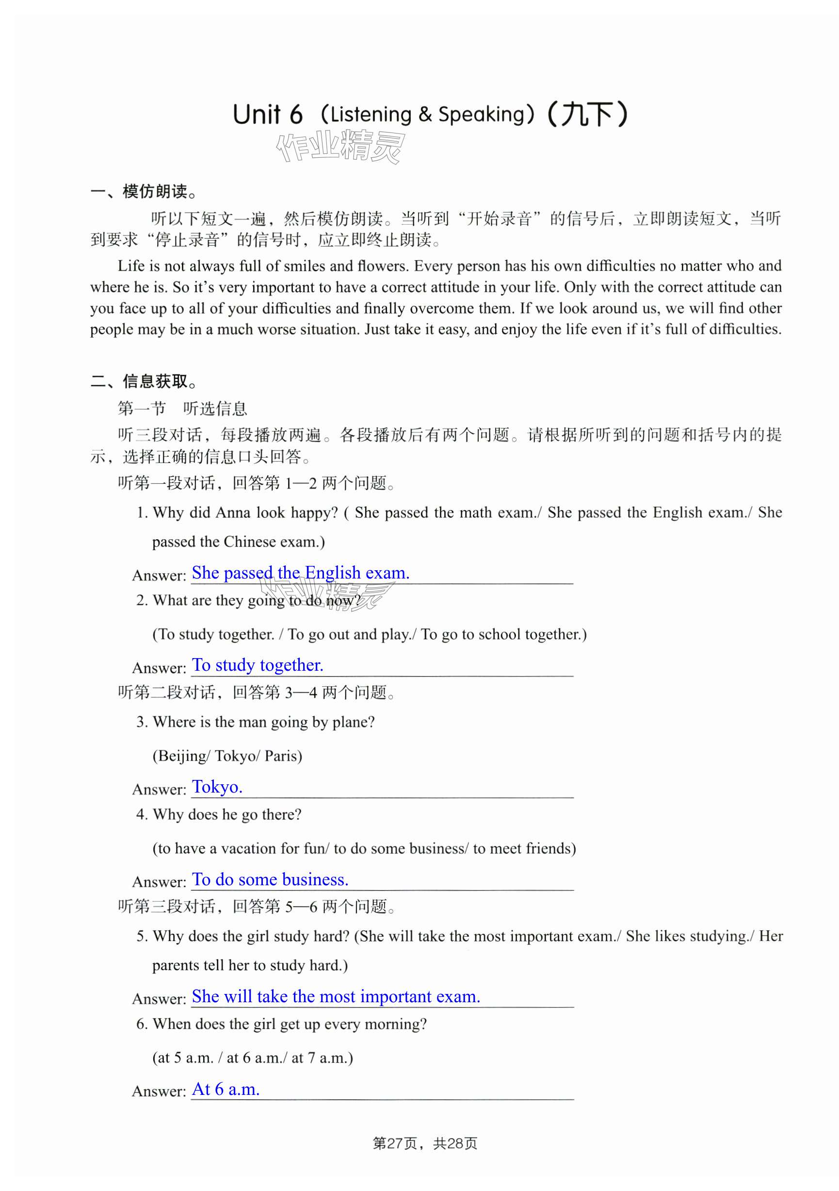 注:目前有些书本章节名称可能整理的还不是很完善,但都是按照顺序排列的,请同学们按照顺序仔细查找。练习册 2024年A加直通车同步练习九年级英语全一册沪教版 答案主要是用来给同学们做完题方便对答案用的,请勿直接抄袭。