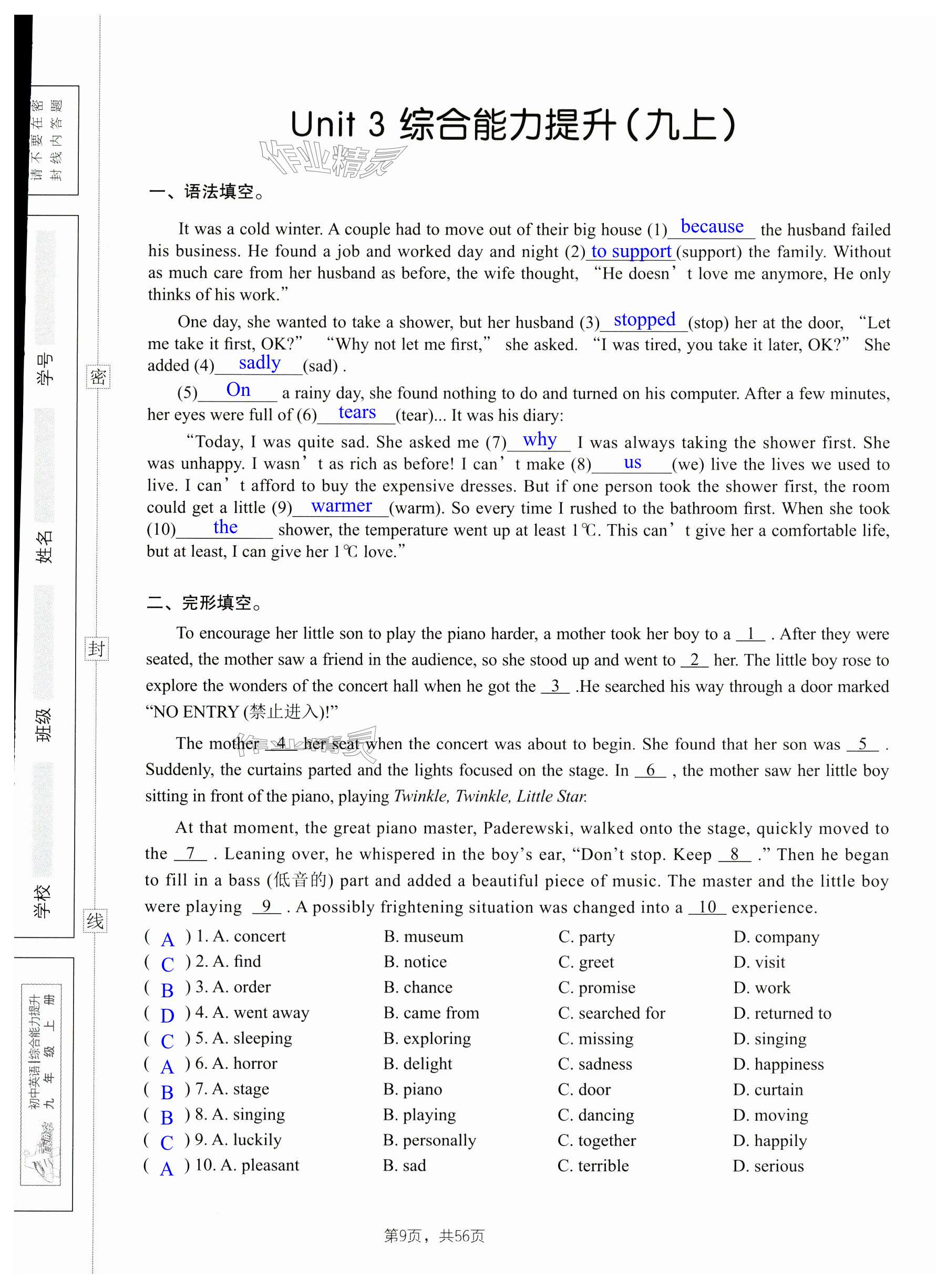 注:目前有些书本章节名称可能整理的还不是很完善,但都是按照顺序排列的,请同学们按照顺序仔细查找。练习册 2024年A加直通车同步练习九年级英语全一册沪教版 答案主要是用来给同学们做完题方便对答案用的,请勿直接抄袭。