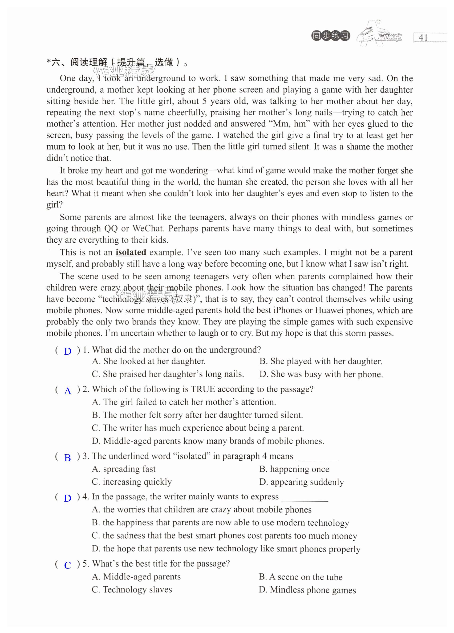 注:目前有些书本章节名称可能整理的还不是很完善,但都是按照顺序排列的,请同学们按照顺序仔细查找。练习册 2024年A加直通车同步练习九年级英语全一册沪教版 答案主要是用来给同学们做完题方便对答案用的,请勿直接抄袭。