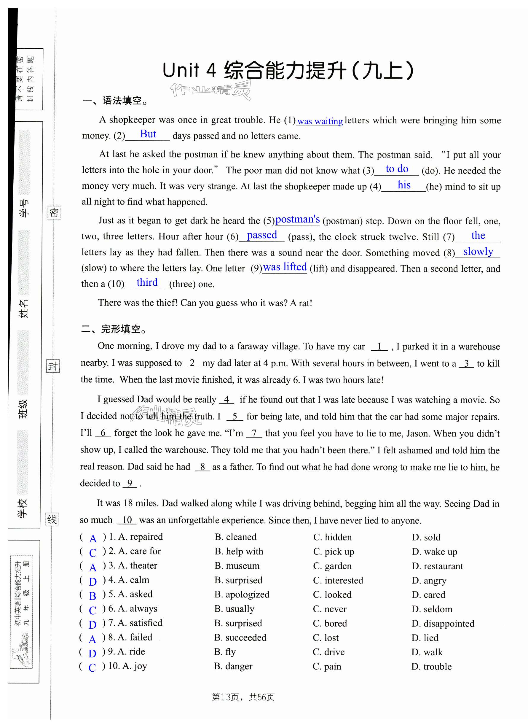 注:目前有些书本章节名称可能整理的还不是很完善,但都是按照顺序排列的,请同学们按照顺序仔细查找。练习册 2024年A加直通车同步练习九年级英语全一册沪教版 答案主要是用来给同学们做完题方便对答案用的,请勿直接抄袭。