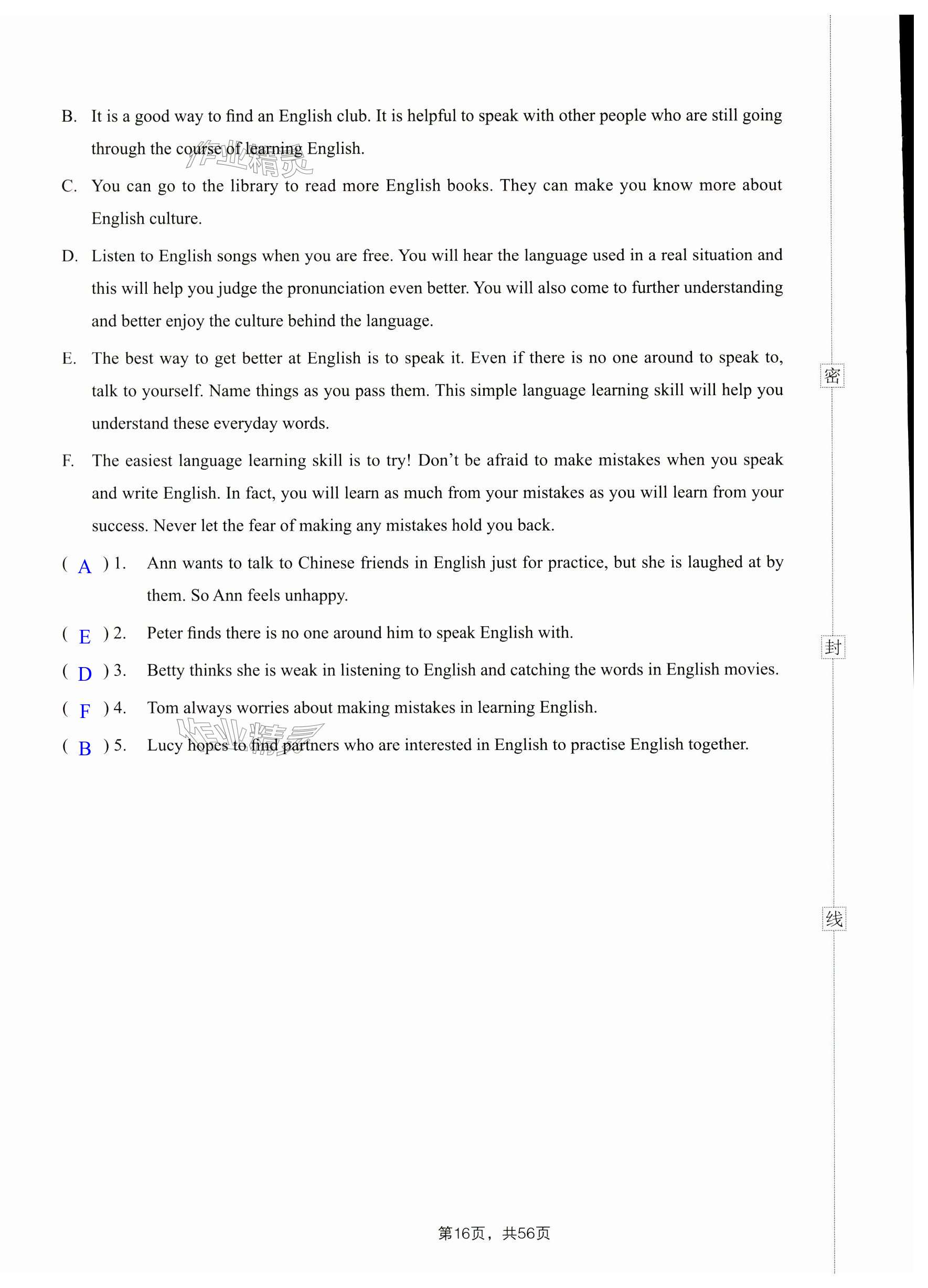 注:目前有些书本章节名称可能整理的还不是很完善,但都是按照顺序排列的,请同学们按照顺序仔细查找。练习册 2024年A加直通车同步练习九年级英语全一册沪教版 答案主要是用来给同学们做完题方便对答案用的,请勿直接抄袭。
