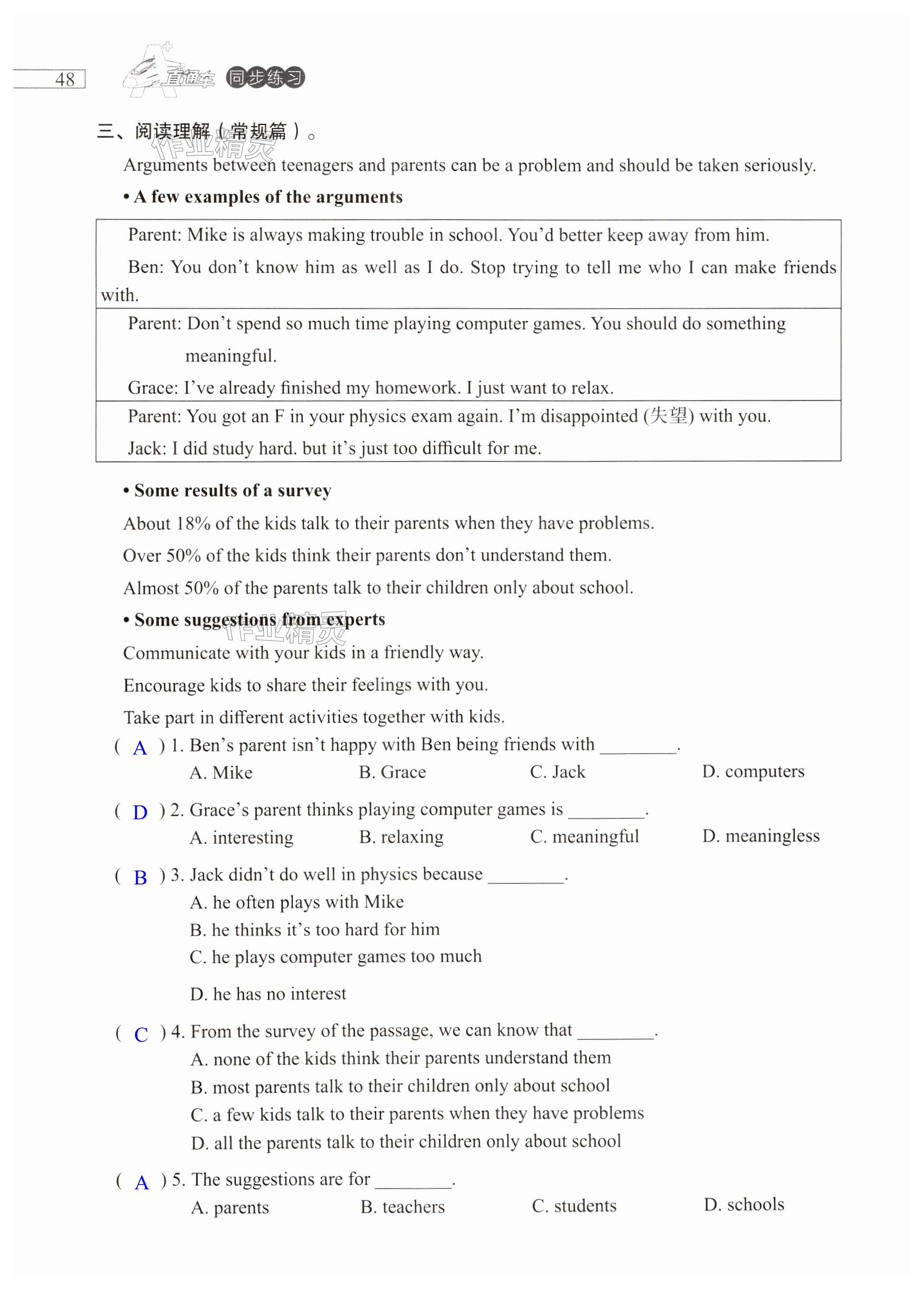 注:目前有些书本章节名称可能整理的还不是很完善,但都是按照顺序排列的,请同学们按照顺序仔细查找。练习册 2024年A加直通车同步练习九年级英语全一册沪教版 答案主要是用来给同学们做完题方便对答案用的,请勿直接抄袭。