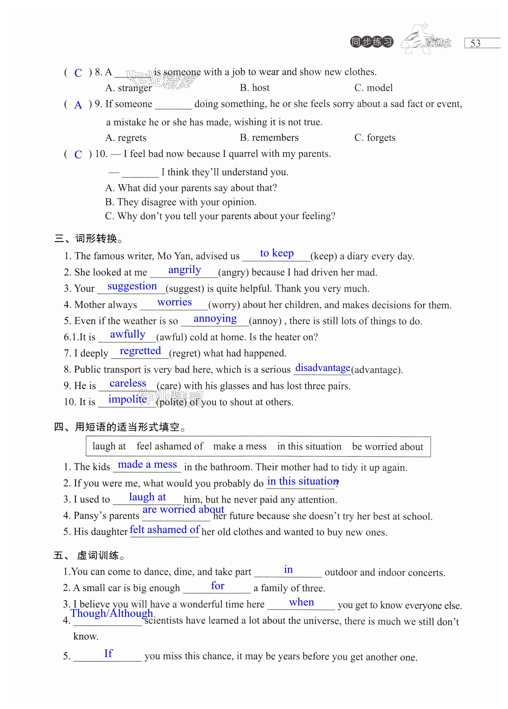注:目前有些书本章节名称可能整理的还不是很完善,但都是按照顺序排列的,请同学们按照顺序仔细查找。练习册 2024年A加直通车同步练习九年级英语全一册沪教版 答案主要是用来给同学们做完题方便对答案用的,请勿直接抄袭。