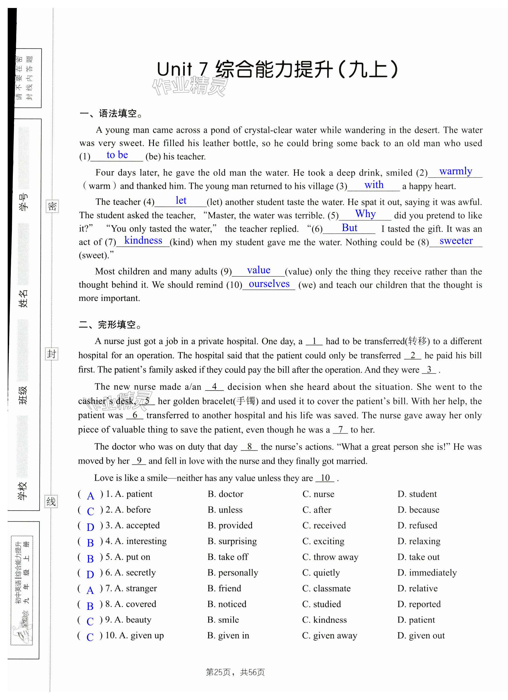 注:目前有些书本章节名称可能整理的还不是很完善,但都是按照顺序排列的,请同学们按照顺序仔细查找。练习册 2024年A加直通车同步练习九年级英语全一册沪教版 答案主要是用来给同学们做完题方便对答案用的,请勿直接抄袭。