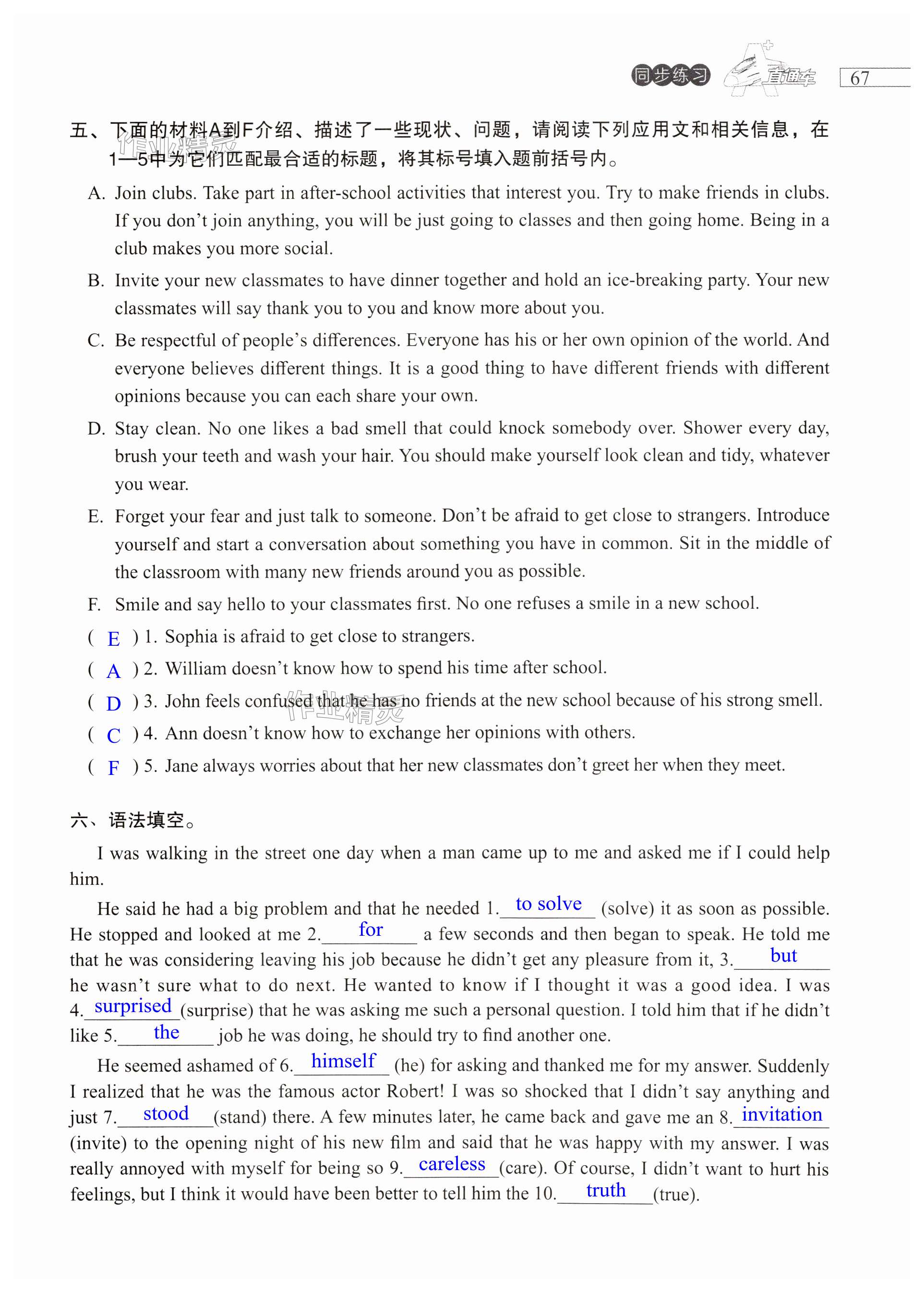 注:目前有些书本章节名称可能整理的还不是很完善,但都是按照顺序排列的,请同学们按照顺序仔细查找。练习册 2024年A加直通车同步练习九年级英语全一册沪教版 答案主要是用来给同学们做完题方便对答案用的,请勿直接抄袭。