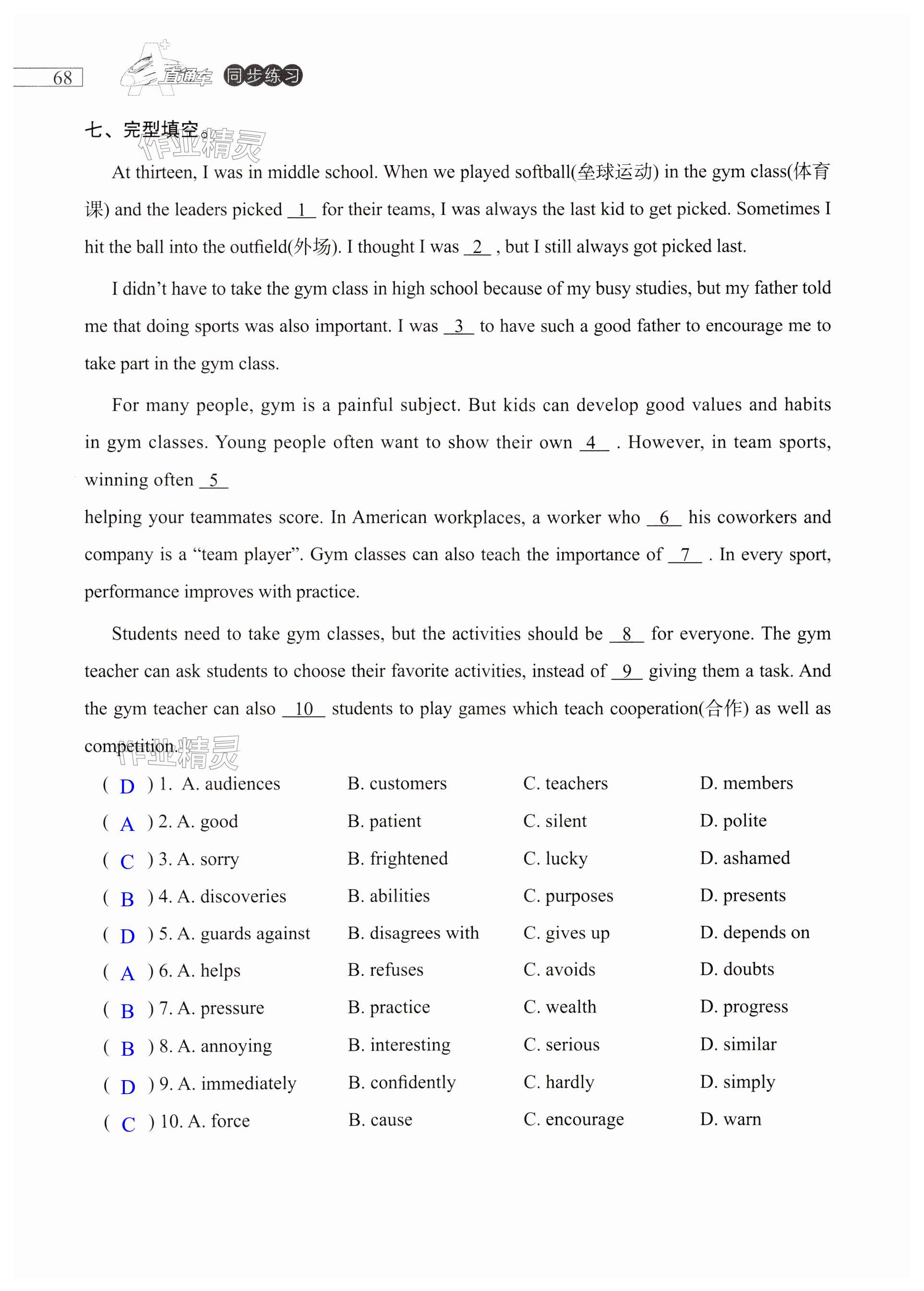 注:目前有些书本章节名称可能整理的还不是很完善,但都是按照顺序排列的,请同学们按照顺序仔细查找。练习册 2024年A加直通车同步练习九年级英语全一册沪教版 答案主要是用来给同学们做完题方便对答案用的,请勿直接抄袭。