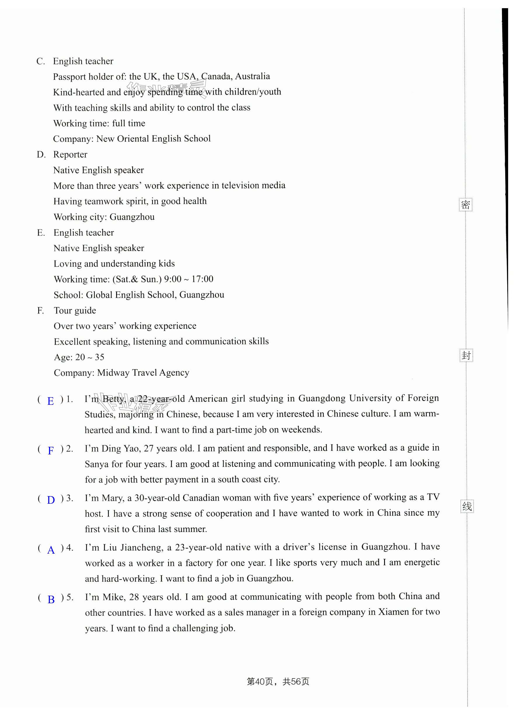 注:目前有些书本章节名称可能整理的还不是很完善,但都是按照顺序排列的,请同学们按照顺序仔细查找。练习册 2024年A加直通车同步练习九年级英语全一册沪教版 答案主要是用来给同学们做完题方便对答案用的,请勿直接抄袭。