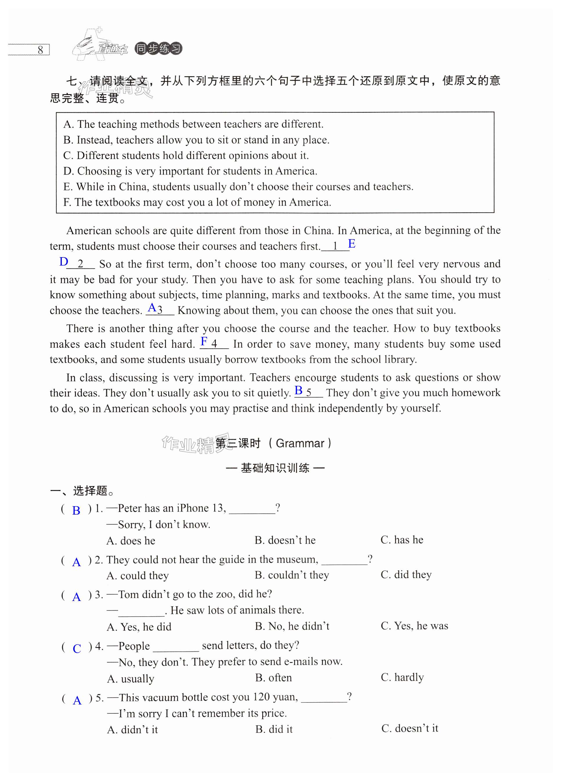 注:目前有些书本章节名称可能整理的还不是很完善,但都是按照顺序排列的,请同学们按照顺序仔细查找。练习册 2024年A加直通车同步练习九年级英语全一册沪教版 答案主要是用来给同学们做完题方便对答案用的,请勿直接抄袭。