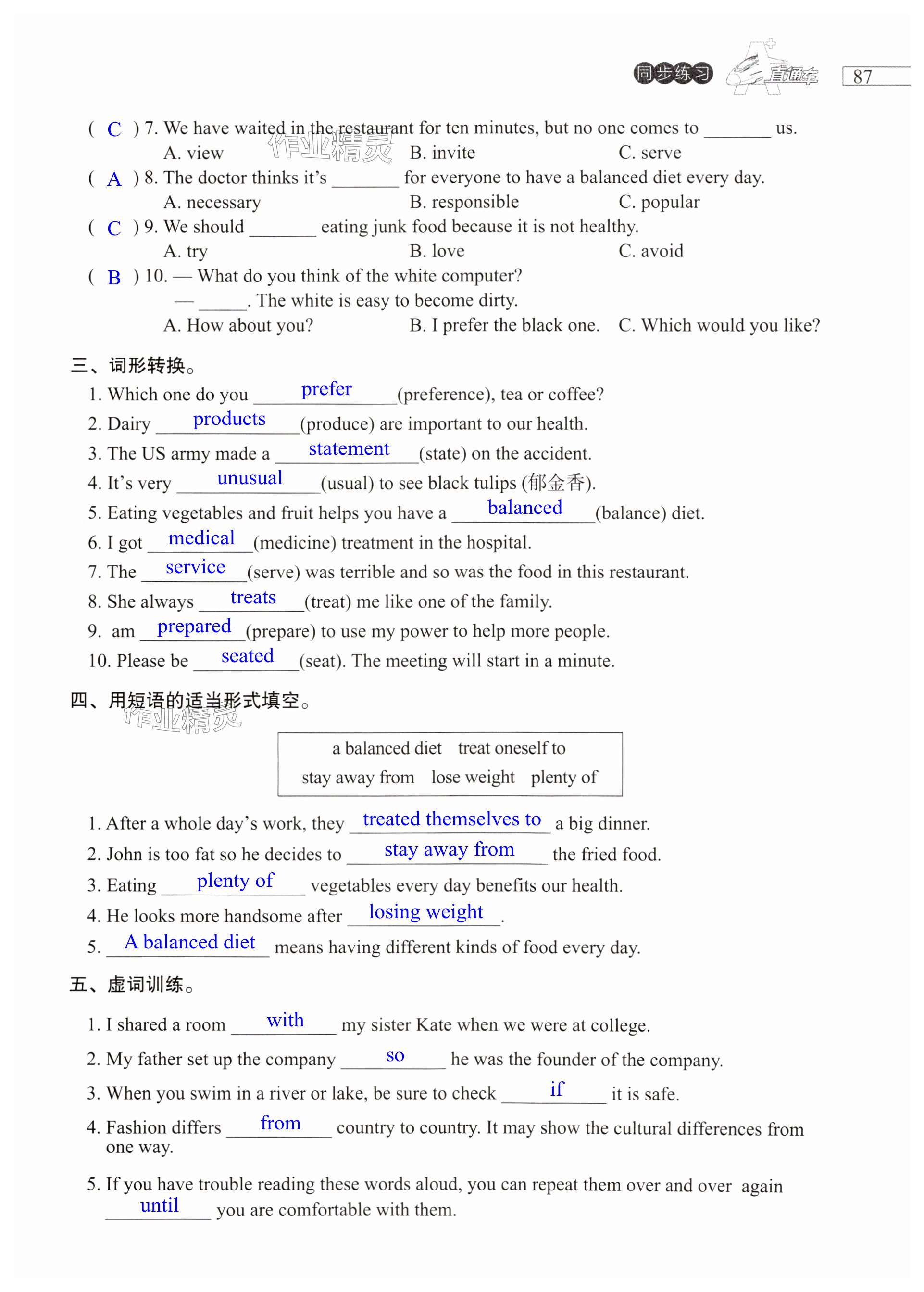 注:目前有些书本章节名称可能整理的还不是很完善,但都是按照顺序排列的,请同学们按照顺序仔细查找。练习册 2024年A加直通车同步练习九年级英语全一册沪教版 答案主要是用来给同学们做完题方便对答案用的,请勿直接抄袭。