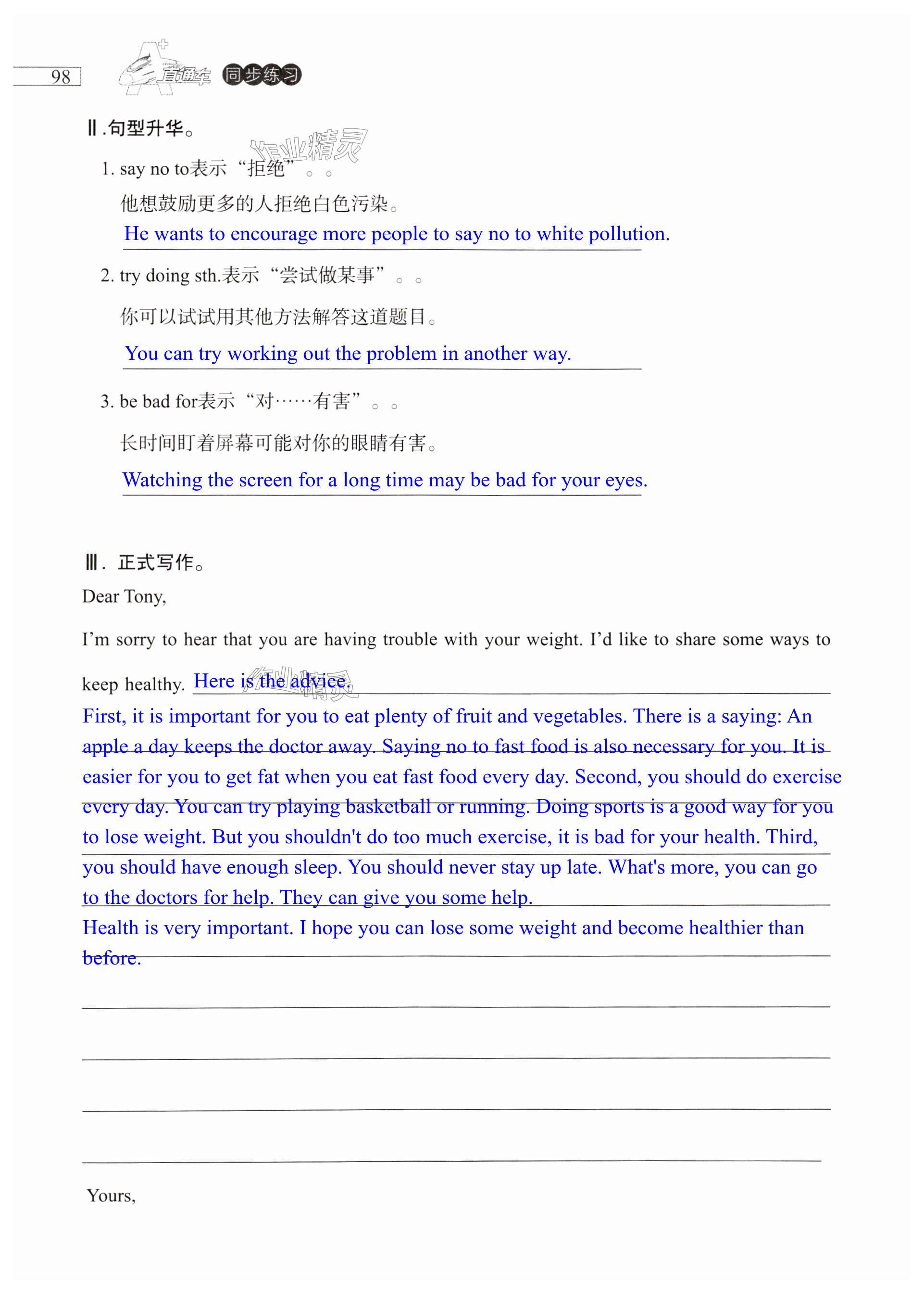注:目前有些书本章节名称可能整理的还不是很完善,但都是按照顺序排列的,请同学们按照顺序仔细查找。练习册 2024年A加直通车同步练习九年级英语全一册沪教版 答案主要是用来给同学们做完题方便对答案用的,请勿直接抄袭。