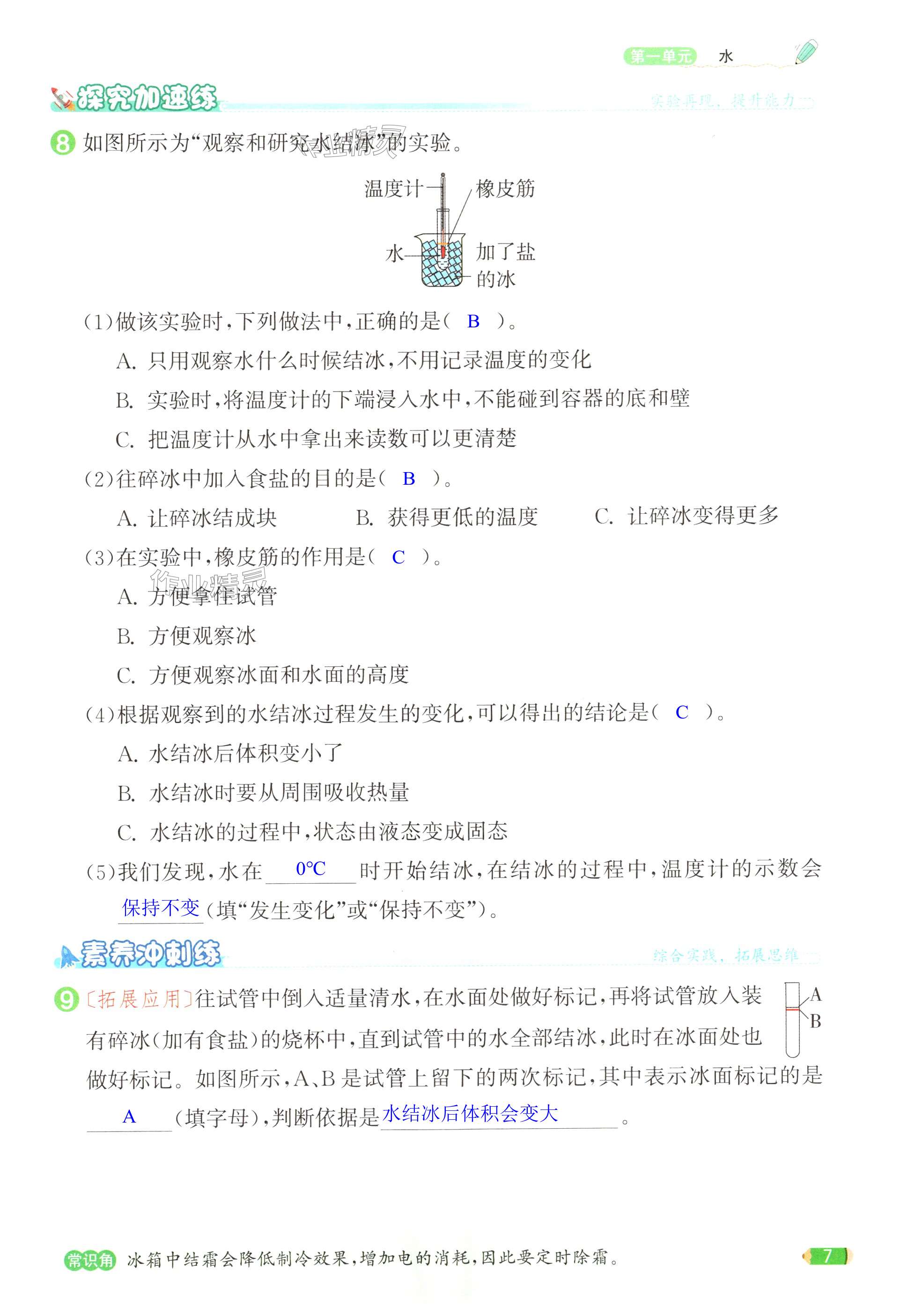 注:目前有些书本章节名称可能整理的还不是很完善,但都是按照顺序排列的,请同学们按照顺序仔细查找。练习册 2024年奔跑吧少年三年级科学上册教科版 答案主要是用来给同学们做完题方便对答案用的,请勿直接抄袭。