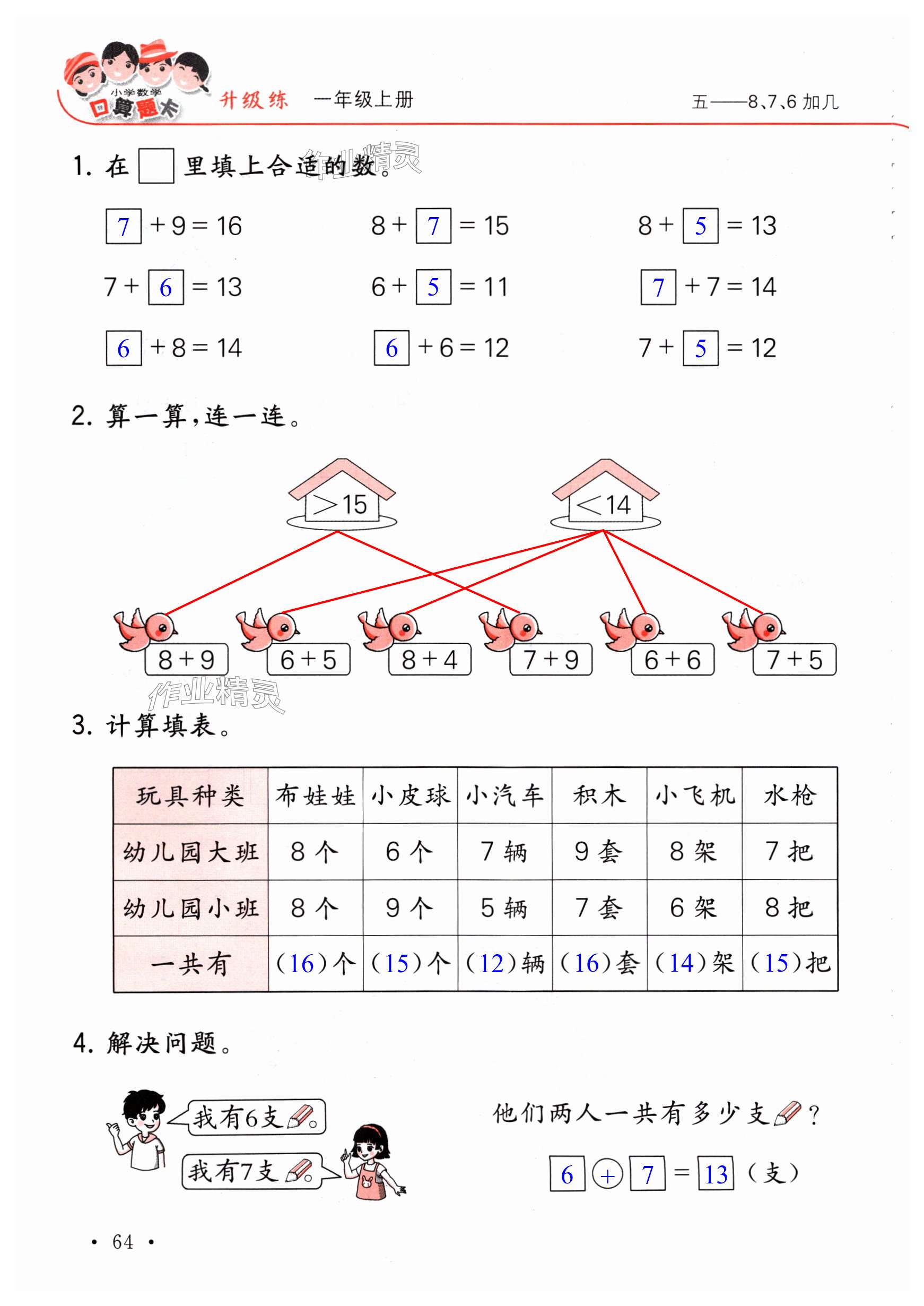 注:目前有些书本章节名称可能整理的还不是很完善,但都是按照顺序排列的,请同学们按照顺序仔细查找。练习册 2024年小学数学口算题卡升级练一年级上册人教版 答案主要是用来给同学们做完题方便对答案用的,请勿直接抄袭。