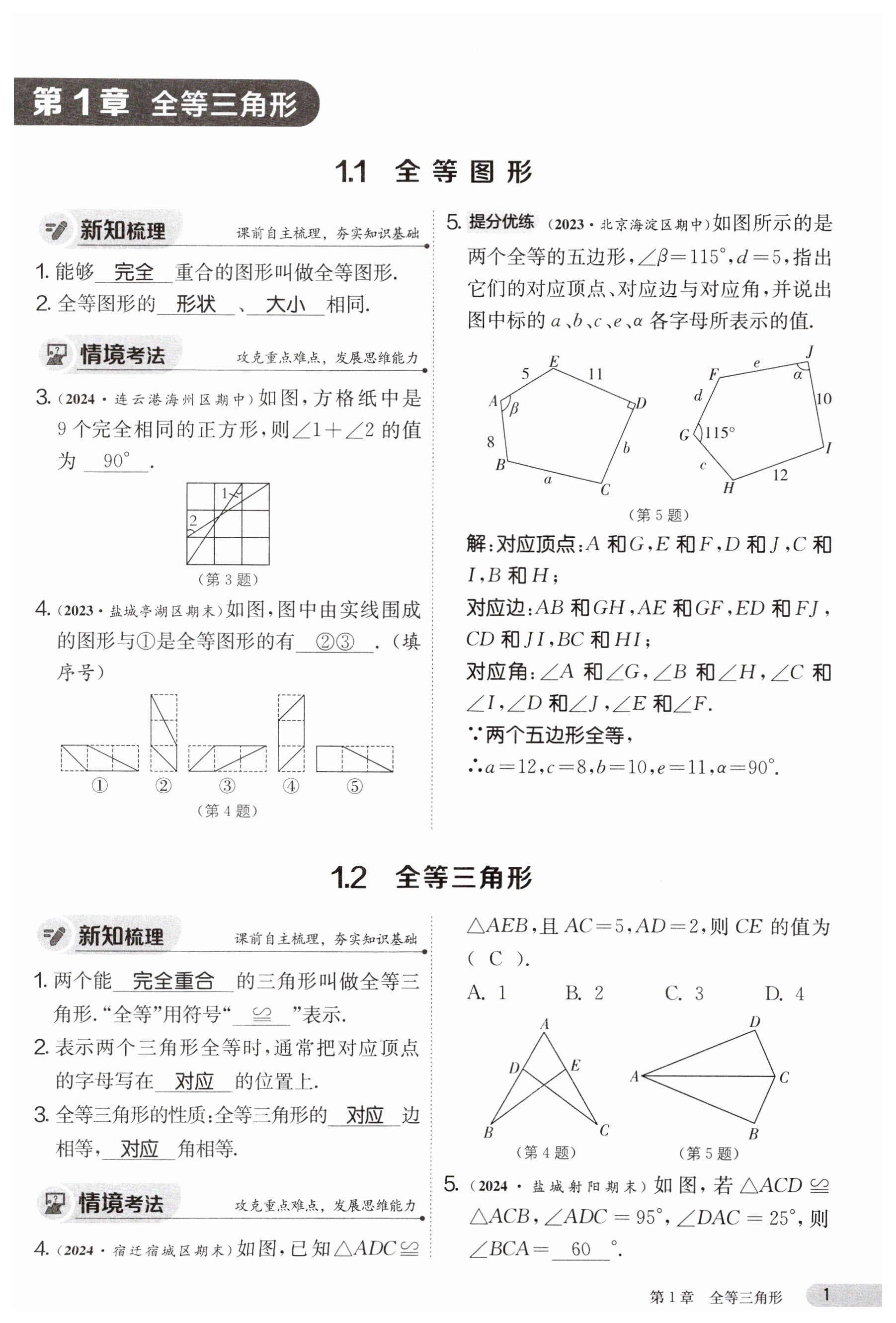 注:目前有些书本章节名称可能整理的还不是很完善,但都是按照顺序排列的,请同学们按照顺序仔细查找。练习册 2024年课时训练江苏人民出版社八年级数学上册苏科版 答案主要是用来给同学们做完题方便对答案用的,请勿直接抄袭。
