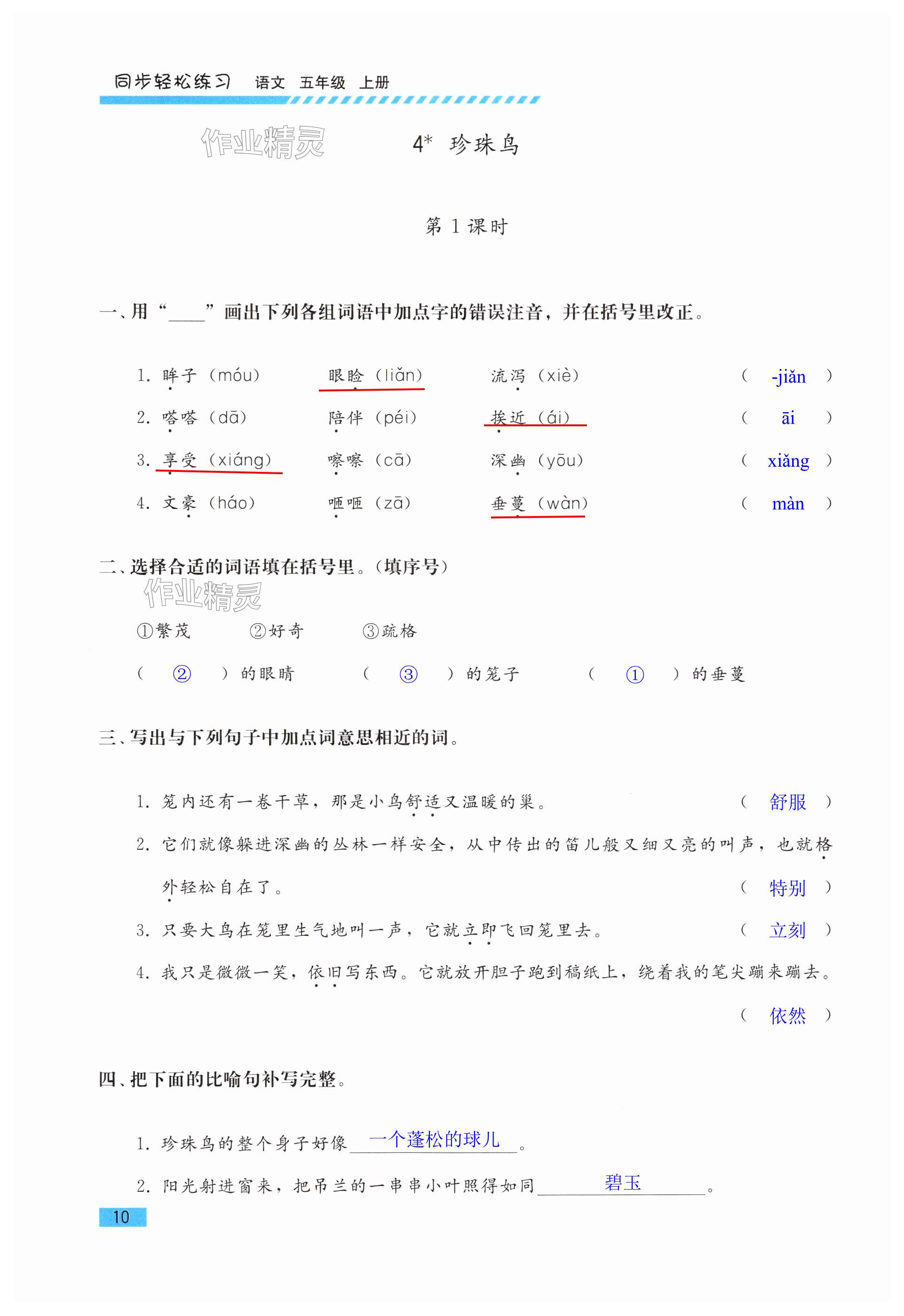 注:目前有些书本章节名称可能整理的还不是很完善,但都是按照顺序排列的,请同学们按照顺序仔细查找。练习册 2024年同步轻松练习五年级语文上册人教版吉林专版 答案主要是用来给同学们做完题方便对答案用的,请勿直接抄袭。