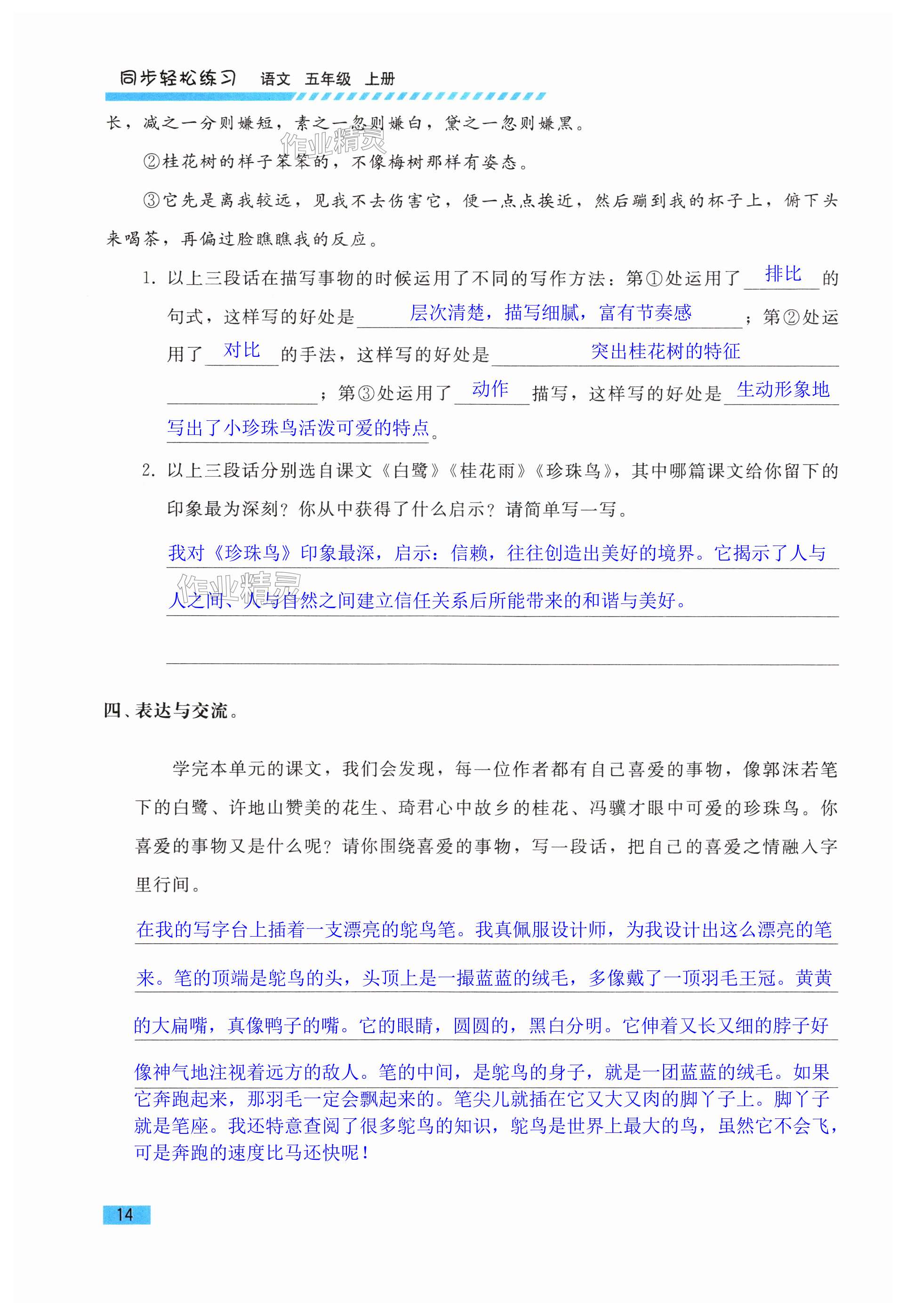 注:目前有些书本章节名称可能整理的还不是很完善,但都是按照顺序排列的,请同学们按照顺序仔细查找。练习册 2024年同步轻松练习五年级语文上册人教版吉林专版 答案主要是用来给同学们做完题方便对答案用的,请勿直接抄袭。