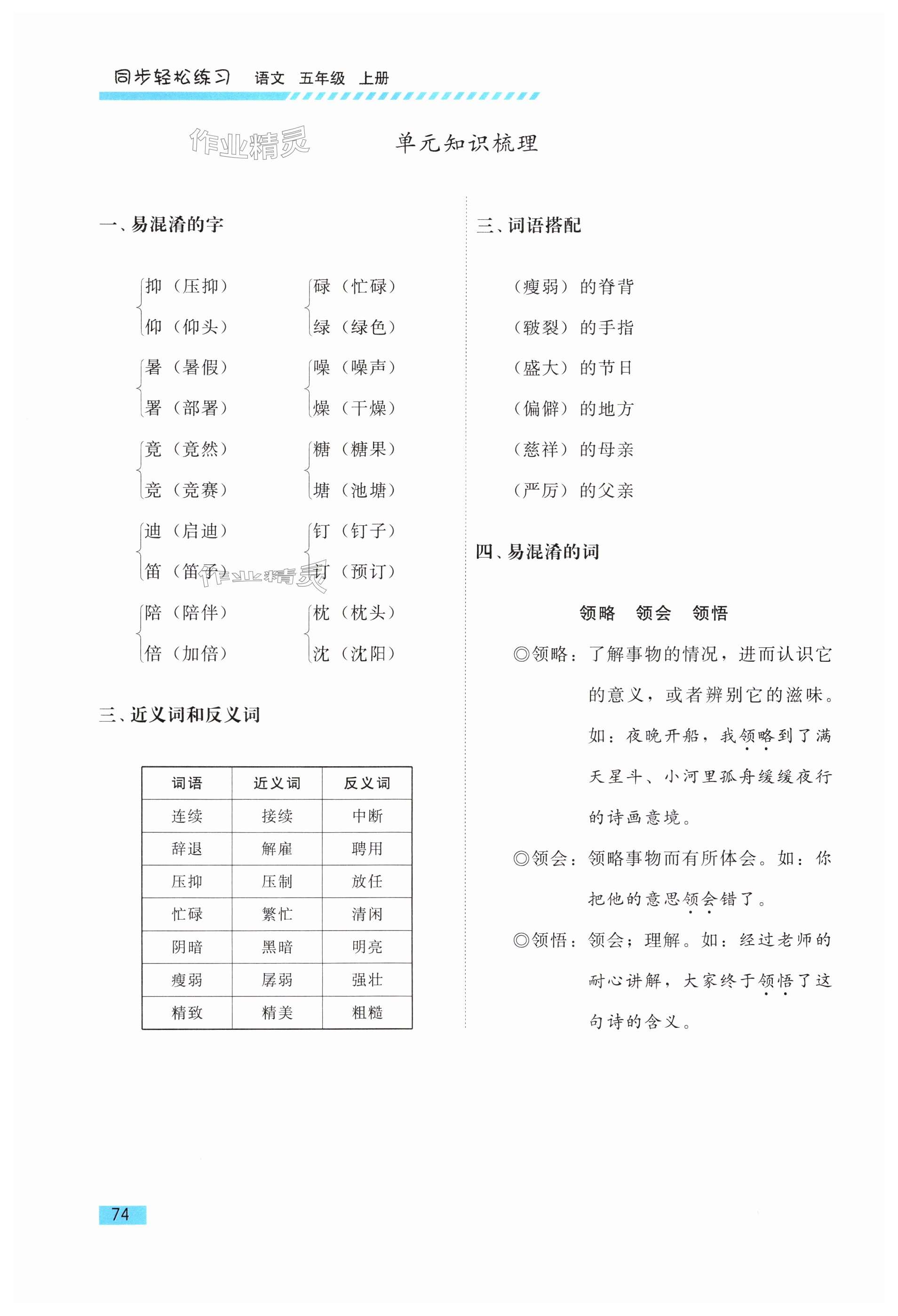 注:目前有些书本章节名称可能整理的还不是很完善,但都是按照顺序排列的,请同学们按照顺序仔细查找。练习册 2024年同步轻松练习五年级语文上册人教版吉林专版 答案主要是用来给同学们做完题方便对答案用的,请勿直接抄袭。