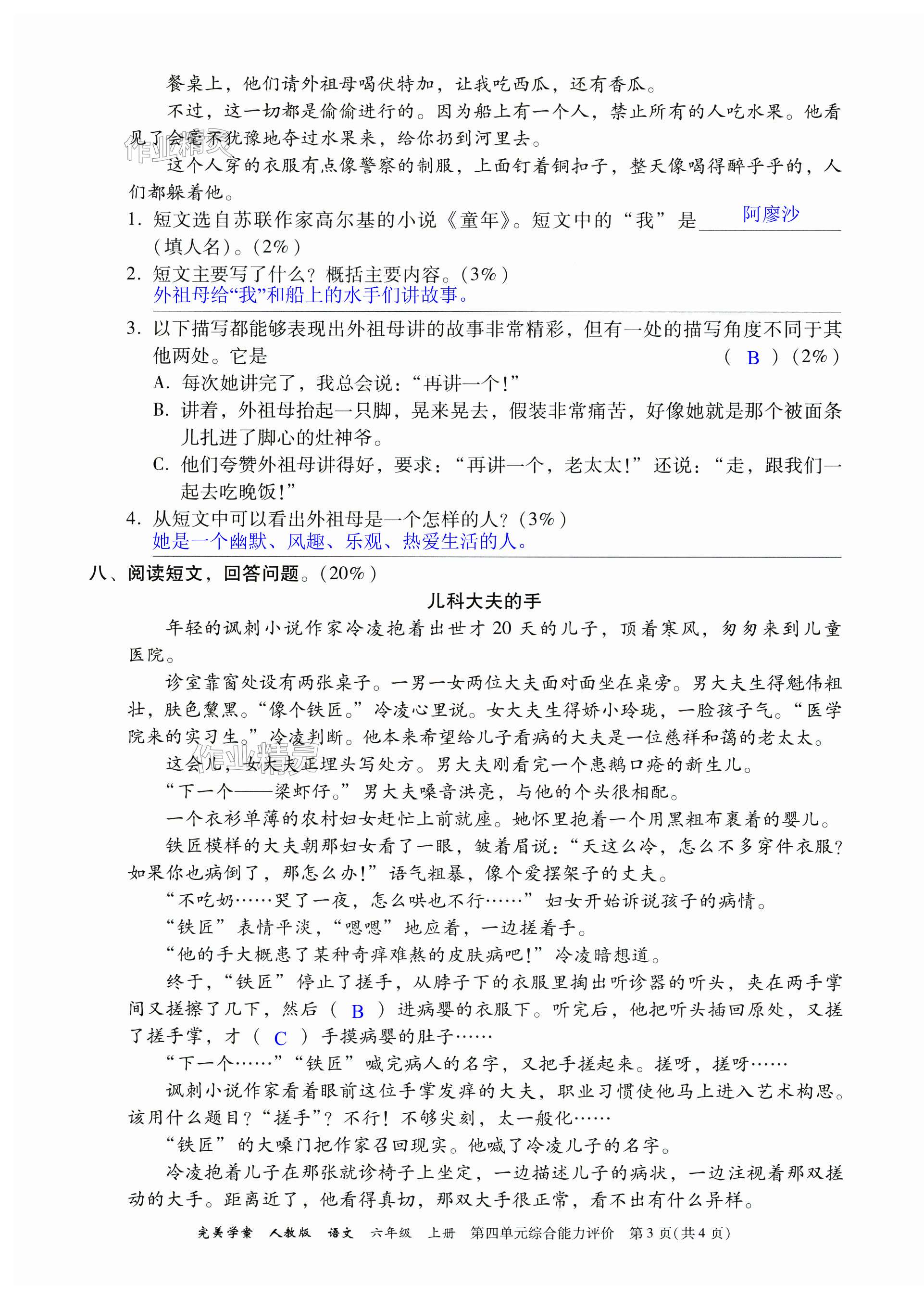 注:目前有些书本章节名称可能整理的还不是很完善,但都是按照顺序排列的,请同学们按照顺序仔细查找。练习册 2024年完美学案六年级语文上册人教版 答案主要是用来给同学们做完题方便对答案用的,请勿直接抄袭。