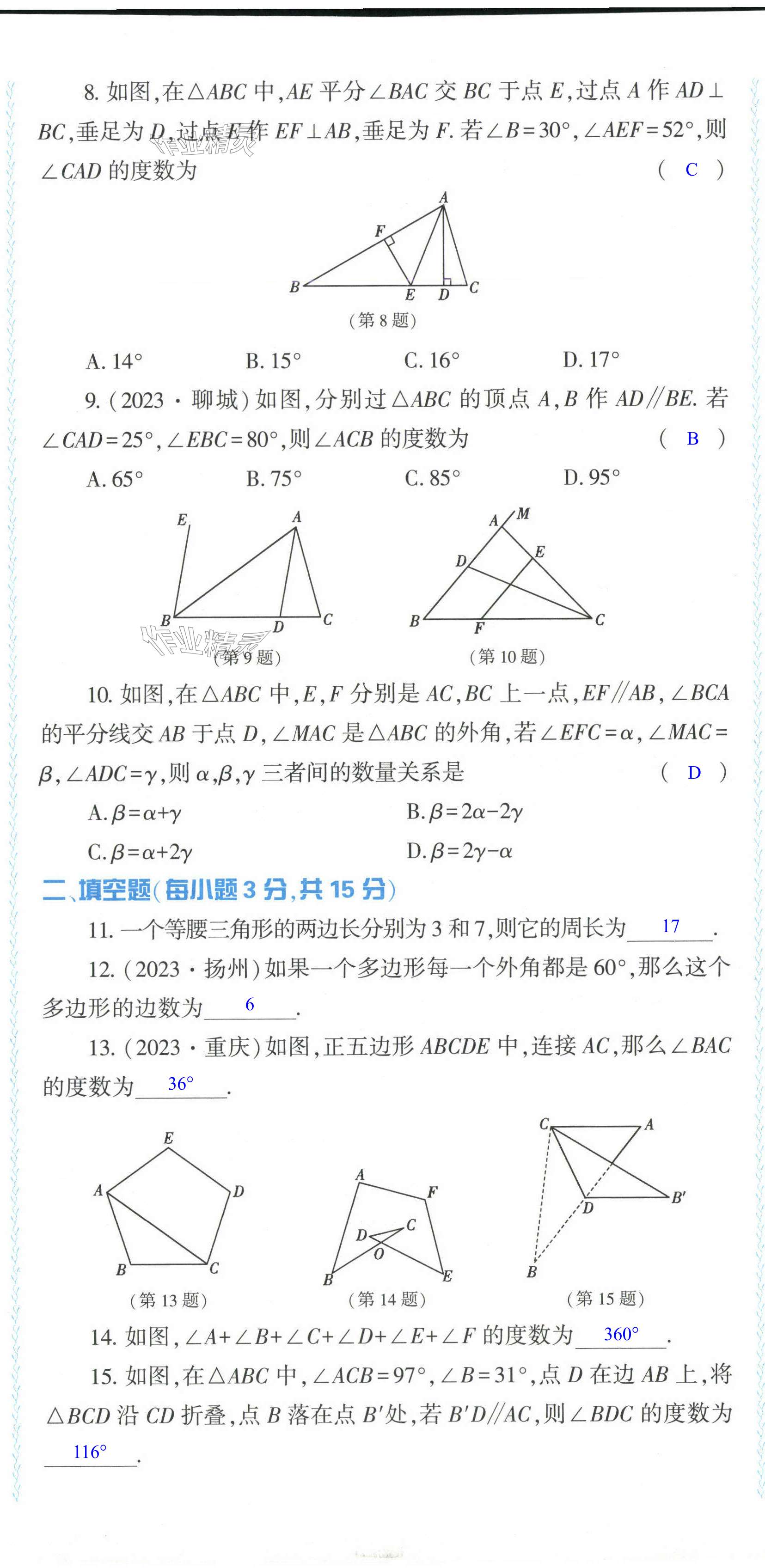 注:目前有些书本章节名称可能整理的还不是很完善,但都是按照顺序排列的,请同学们按照顺序仔细查找。练习册 2024年基础训练大象出版社八年级数学上册人教版 答案主要是用来给同学们做完题方便对答案用的,请勿直接抄袭。