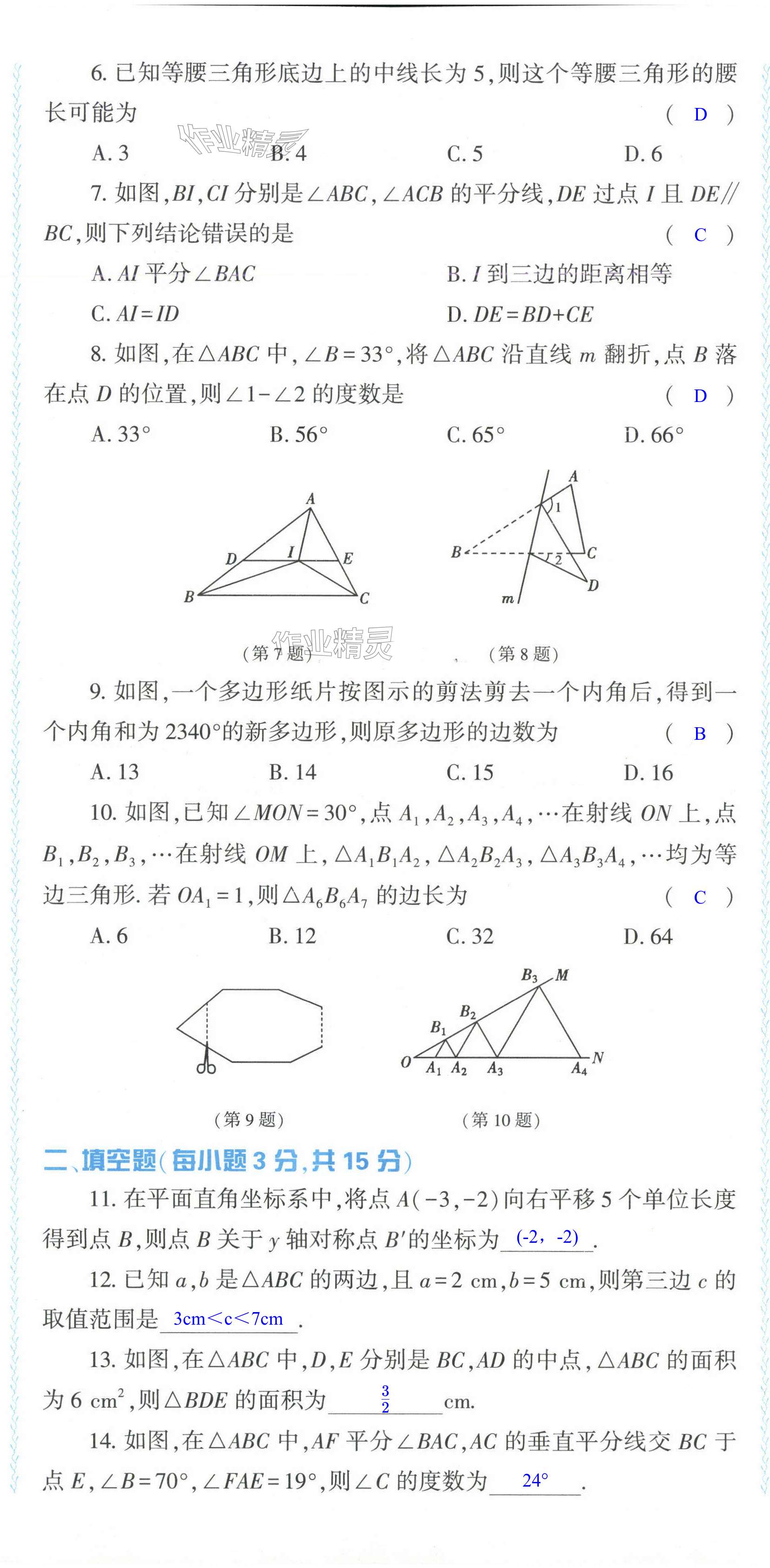 注:目前有些书本章节名称可能整理的还不是很完善,但都是按照顺序排列的,请同学们按照顺序仔细查找。练习册 2024年基础训练大象出版社八年级数学上册人教版 答案主要是用来给同学们做完题方便对答案用的,请勿直接抄袭。