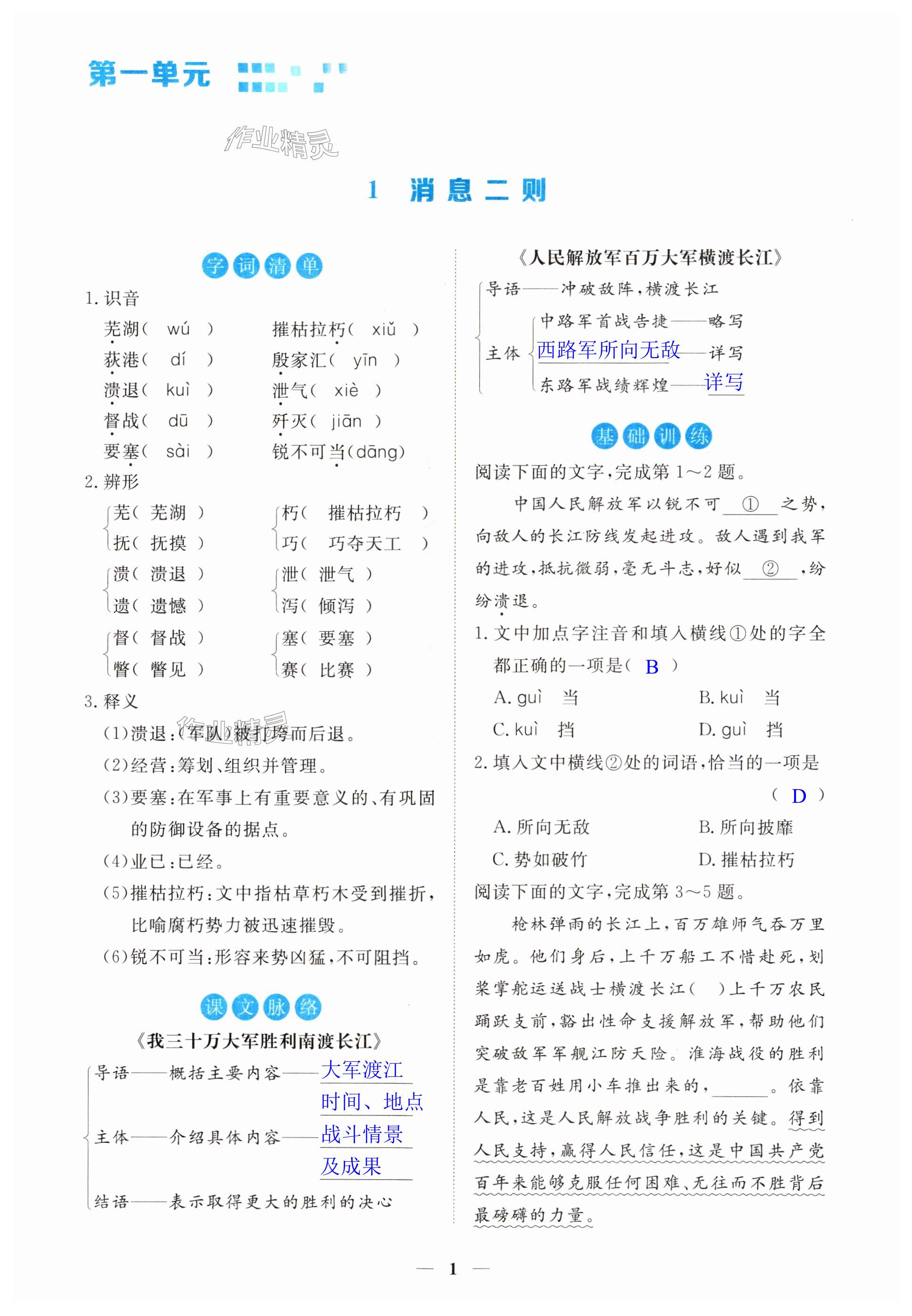 注:目前有些书本章节名称可能整理的还不是很完善,但都是按照顺序排列的,请同学们按照顺序仔细查找。练习册2024年一课一练创新练习八年级语文上册人教版答案主要是用来给同学们做完题方便对答案用的,请勿直接抄袭。