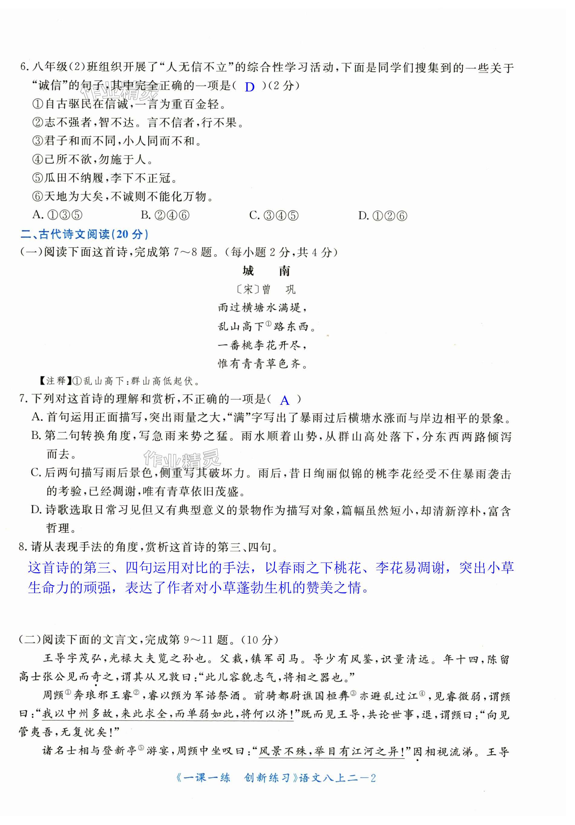 注:目前有些书本章节名称可能整理的还不是很完善,但都是按照顺序排列的,请同学们按照顺序仔细查找。练习册 2024年一课一练创新练习八年级语文上册人教版 答案主要是用来给同学们做完题方便对答案用的,请勿直接抄袭。