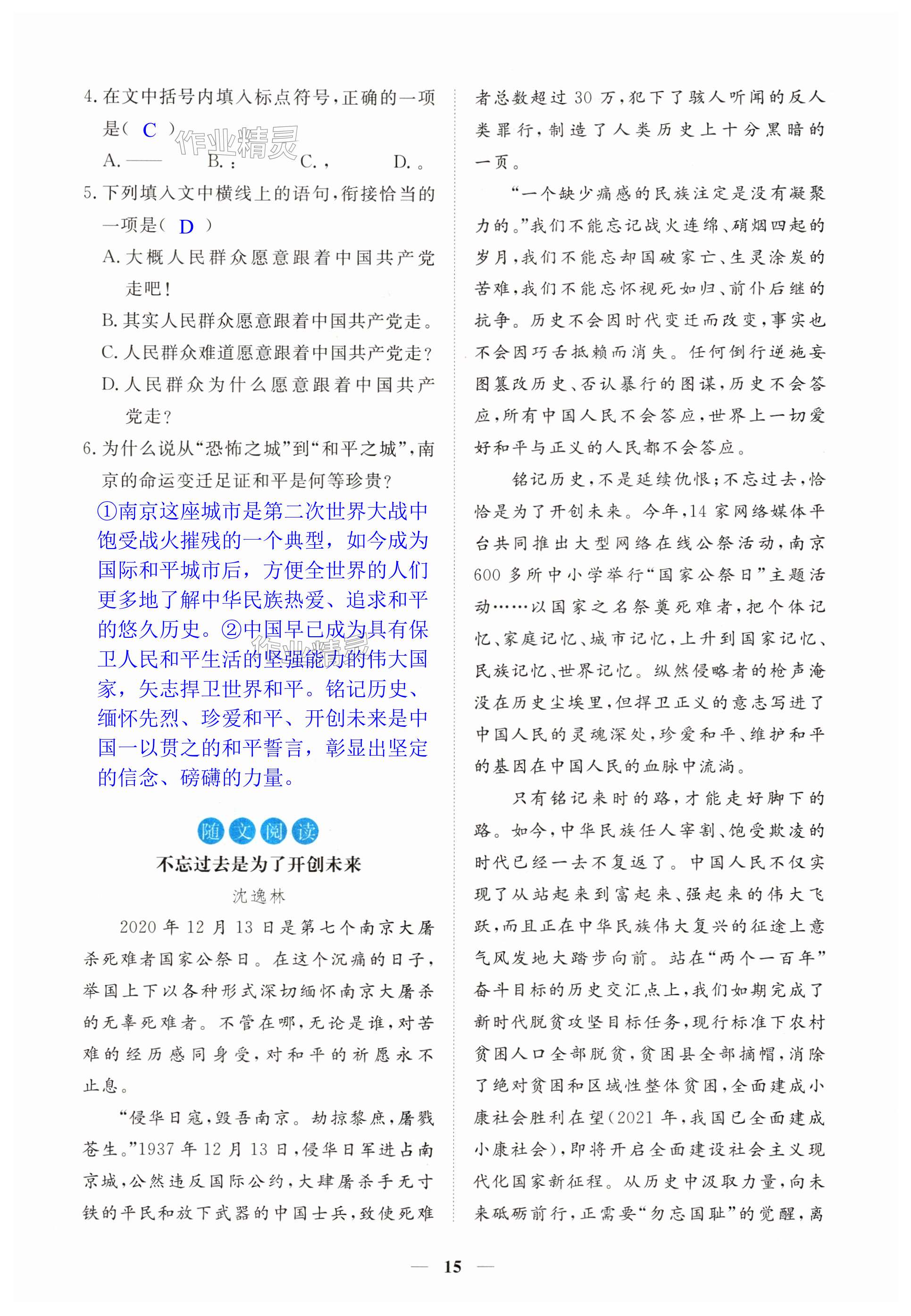 注:目前有些书本章节名称可能整理的还不是很完善,但都是按照顺序排列的,请同学们按照顺序仔细查找。练习册 2024年一课一练创新练习八年级语文上册人教版 答案主要是用来给同学们做完题方便对答案用的,请勿直接抄袭。