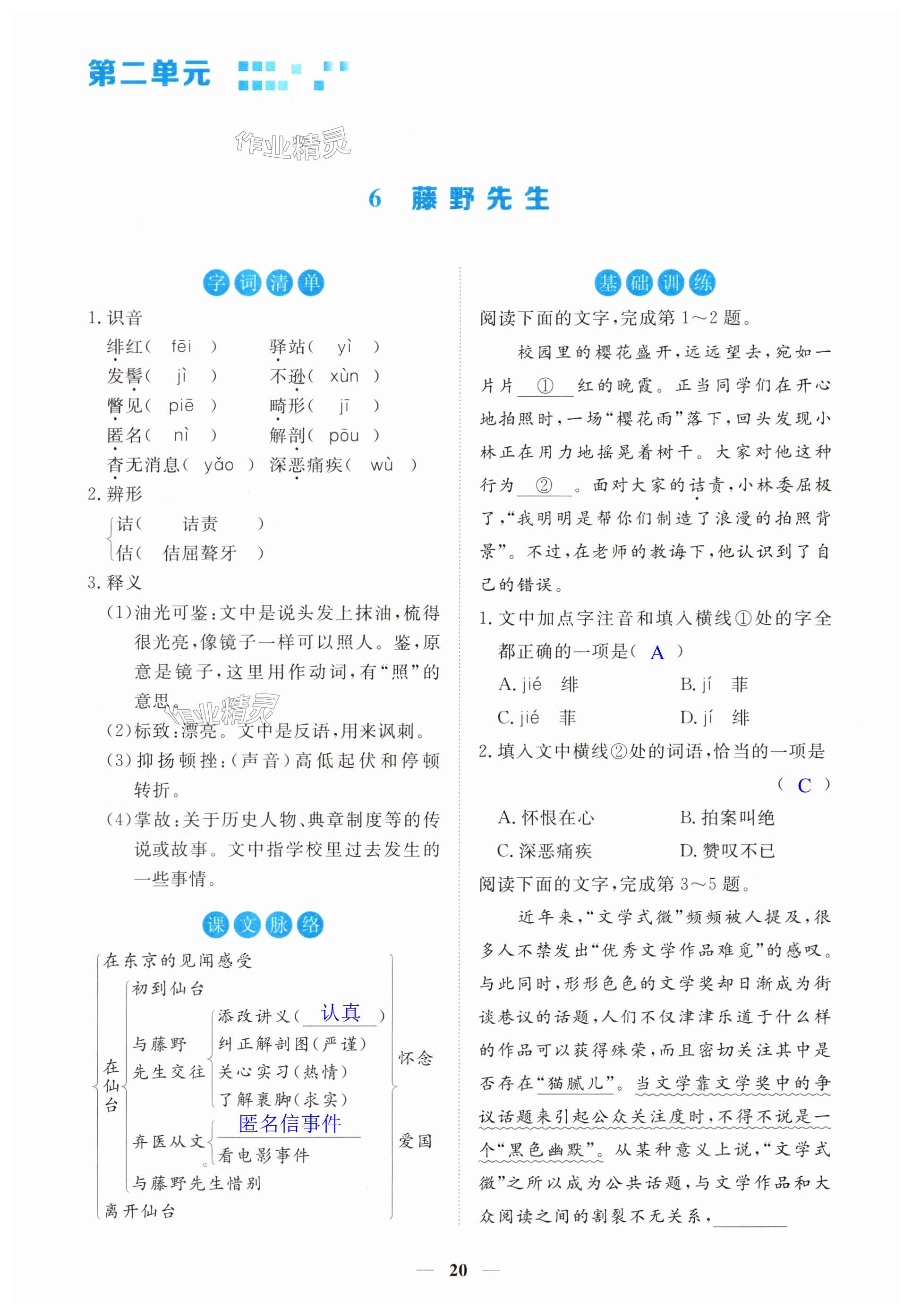 注:目前有些书本章节名称可能整理的还不是很完善,但都是按照顺序排列的,请同学们按照顺序仔细查找。练习册 2024年一课一练创新练习八年级语文上册人教版 答案主要是用来给同学们做完题方便对答案用的,请勿直接抄袭。