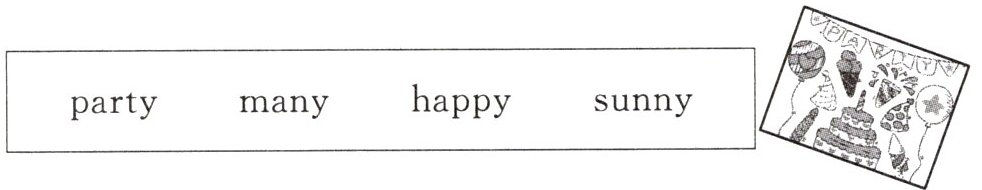 Today is a ______ day. I go to my friend Cindy's birthday ______. We eat the birthday cake and ______ candies. We are so ______.
