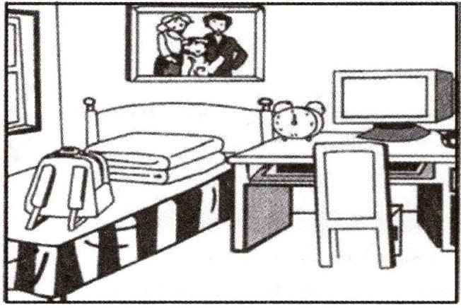 Susie is a cute girl. She has a nice bedroom. What's (in/under) her bedroom? Look! A photo is (on/under) the wall. There is a desk (in/near) the bed. The computer is (on/near) the desk. Susie likes her bedroom very much.