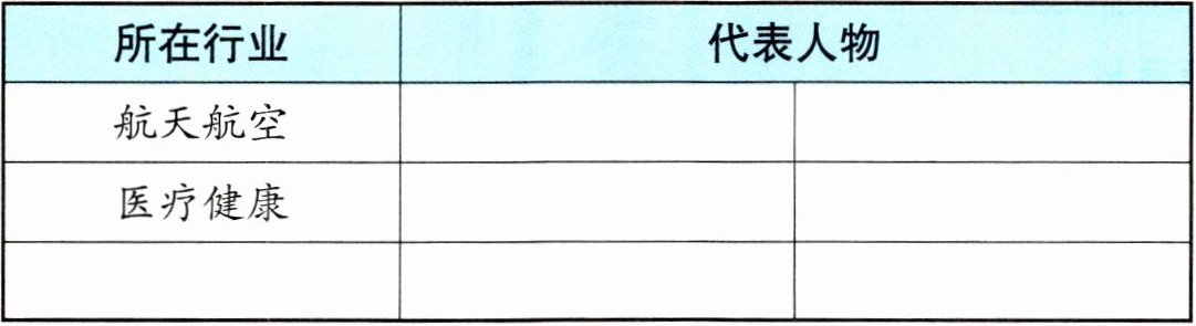 百年来,在强国梦的激励下,各行各业都涌现出大量的优秀人物,为国家作出了卓越的贡献。请查找中华人民共和国成立以来为国家作出杰出贡献的优秀人物,并根据提示完成以下表格。
