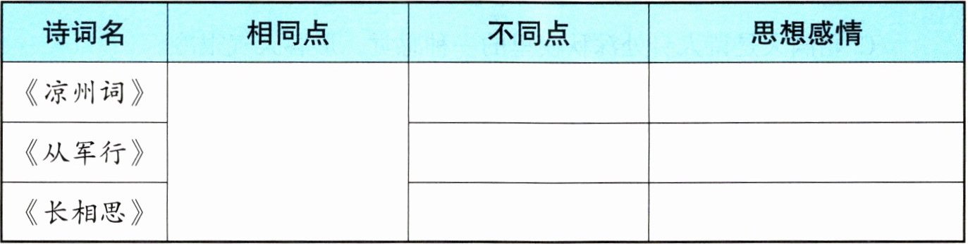 二、对比下面三首诗词,查阅资料,思考它们的相同点和不同点,并结合诗句词句内容,写出作者的思想感情