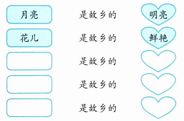 2. 如果让你写一篇文章来表达思乡之情,你会借助什么事物?请照样子填写。