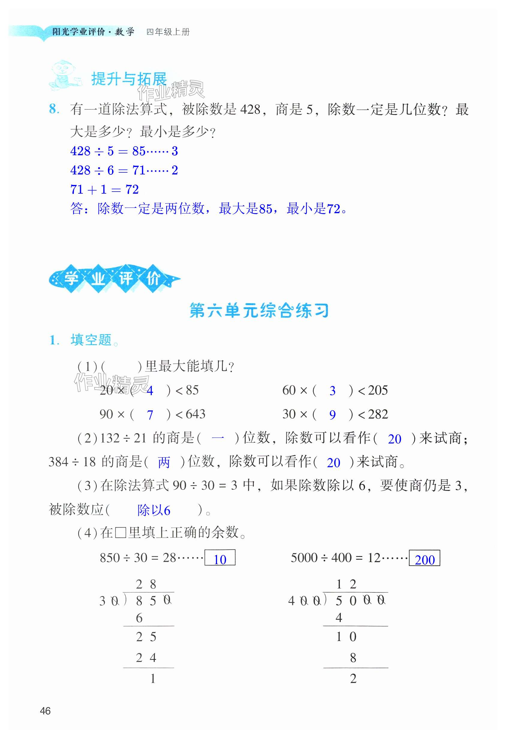 注:目前有些书本章节名称可能整理的还不是很完善,但都是按照顺序排列的,请同学们按照顺序仔细查找。练习册 2024年阳光学业评价四年级数学上册人教版 答案主要是用来给同学们做完题方便对答案用的,请勿直接抄袭。