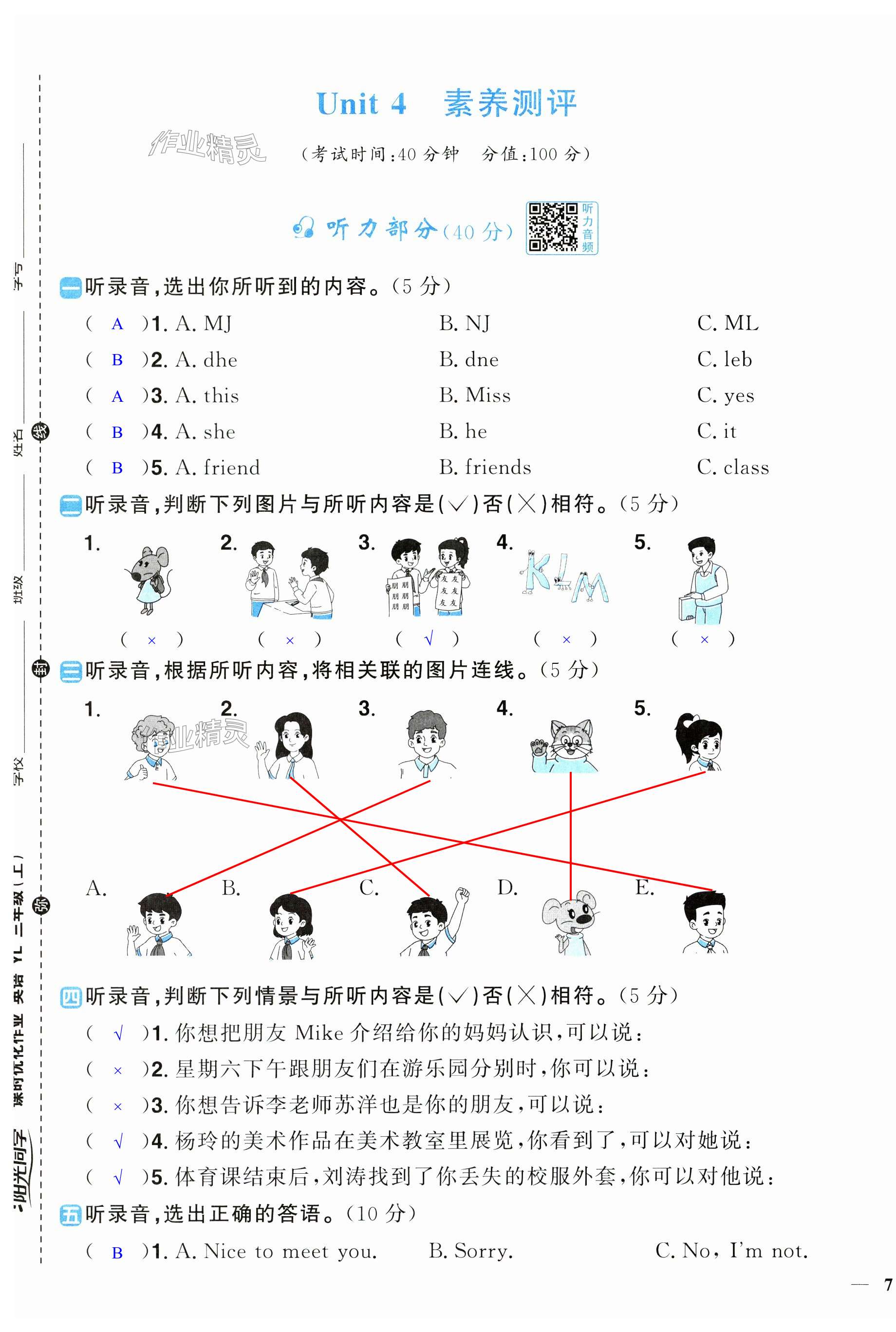 注:目前有些书本章节名称可能整理的还不是很完善,但都是按照顺序排列的,请同学们按照顺序仔细查找。练习册 2024年阳光同学课时优化作业三年级英语上册译林版 答案主要是用来给同学们做完题方便对答案用的,请勿直接抄袭。