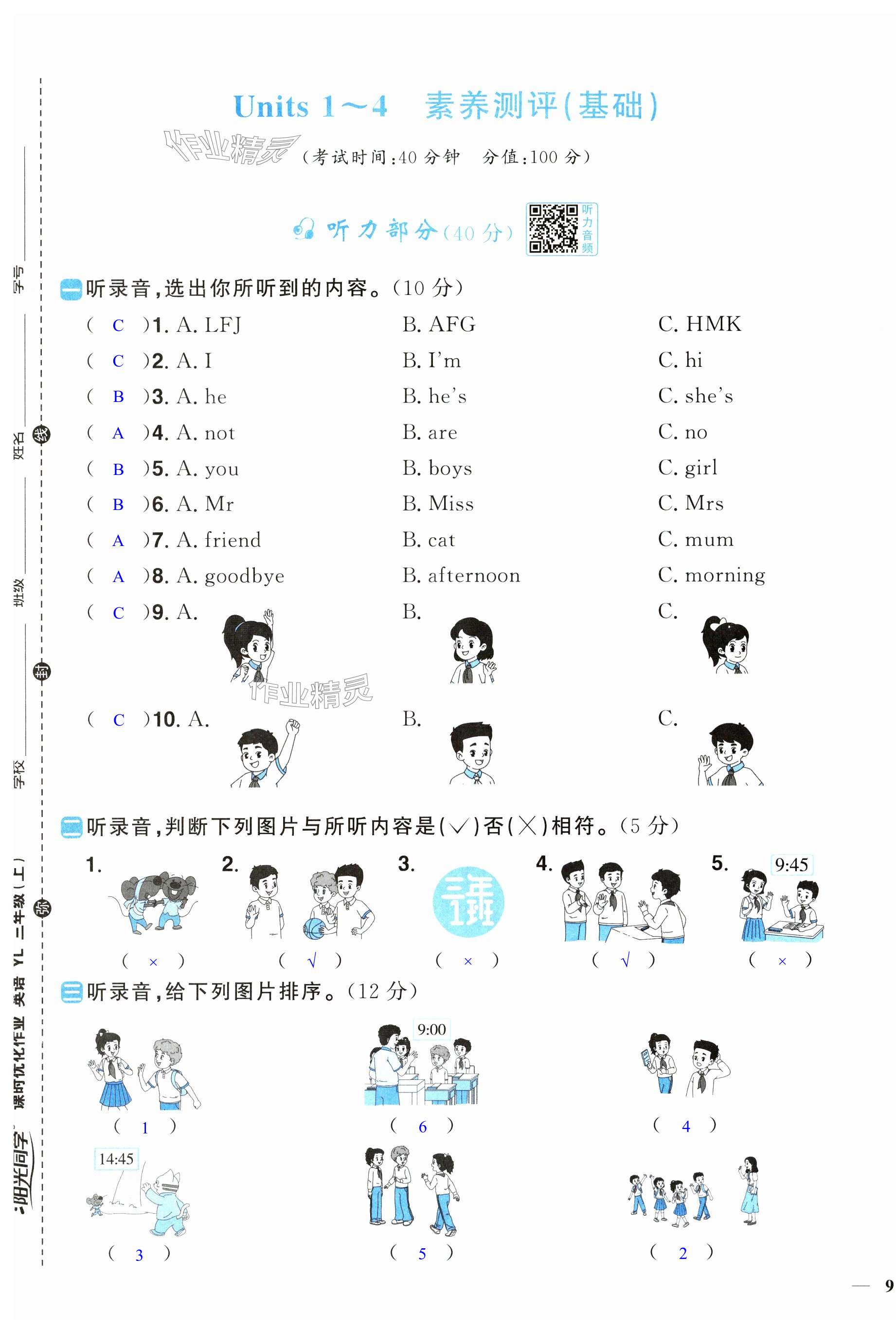 注:目前有些书本章节名称可能整理的还不是很完善,但都是按照顺序排列的,请同学们按照顺序仔细查找。练习册 2024年阳光同学课时优化作业三年级英语上册译林版 答案主要是用来给同学们做完题方便对答案用的,请勿直接抄袭。