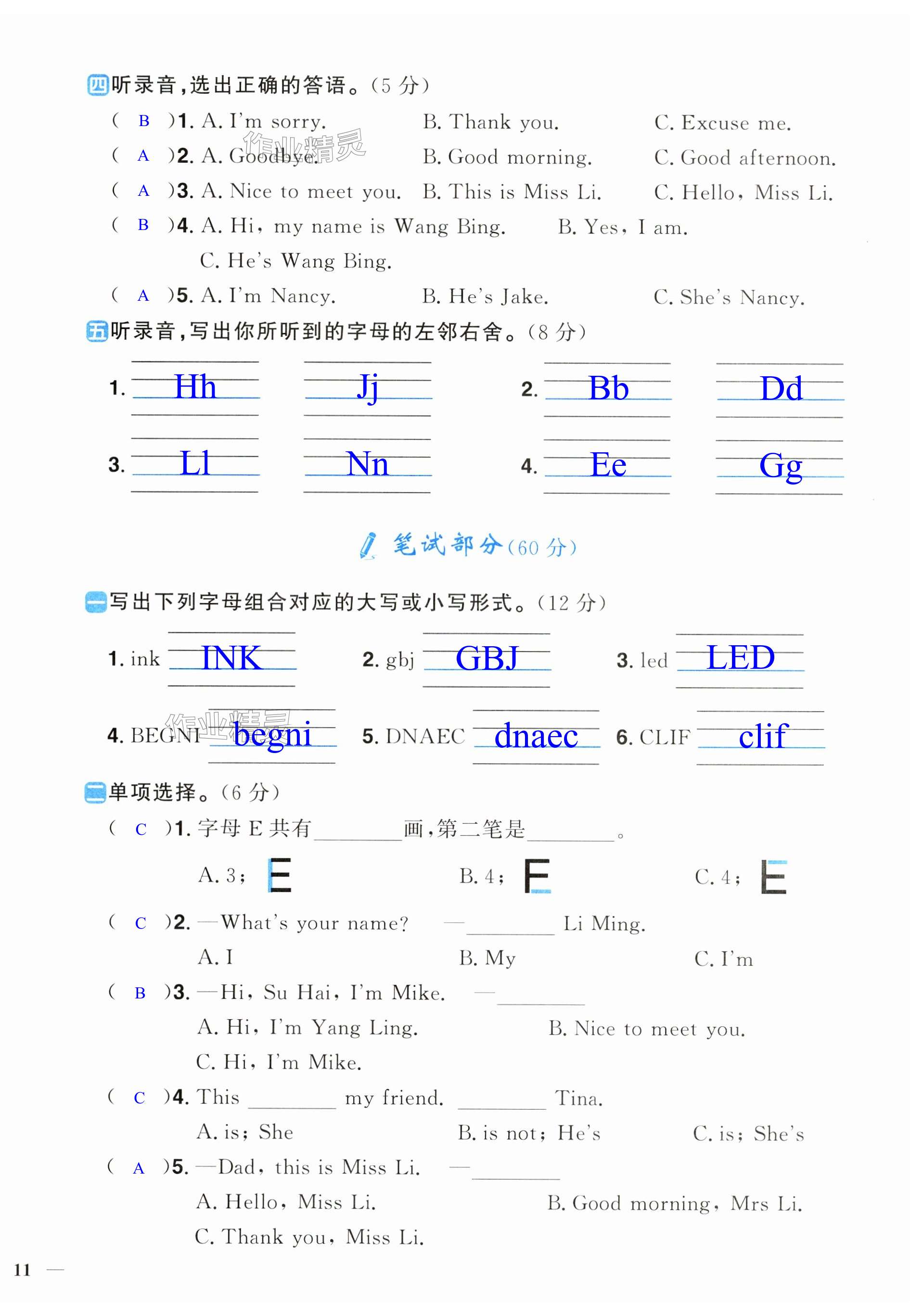 注:目前有些书本章节名称可能整理的还不是很完善,但都是按照顺序排列的,请同学们按照顺序仔细查找。练习册 2024年阳光同学课时优化作业三年级英语上册译林版 答案主要是用来给同学们做完题方便对答案用的,请勿直接抄袭。