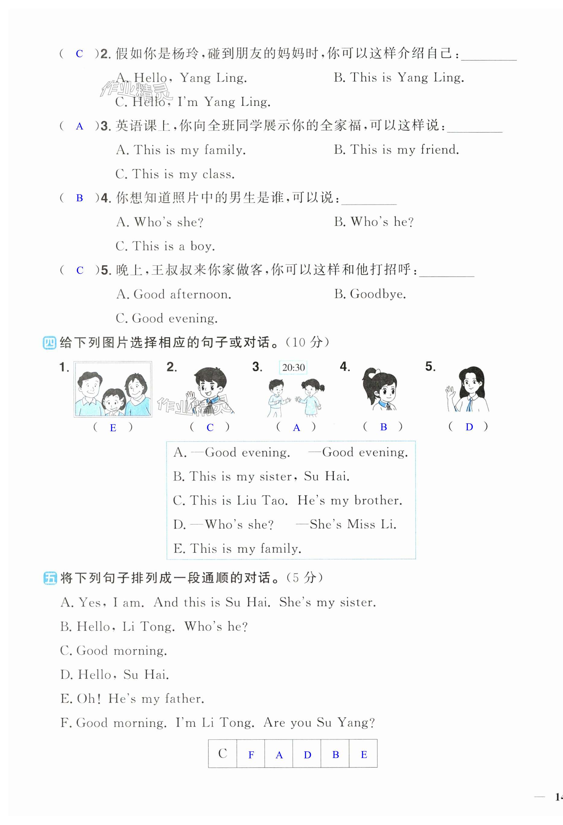 注:目前有些书本章节名称可能整理的还不是很完善,但都是按照顺序排列的,请同学们按照顺序仔细查找。练习册 2024年阳光同学课时优化作业三年级英语上册译林版 答案主要是用来给同学们做完题方便对答案用的,请勿直接抄袭。