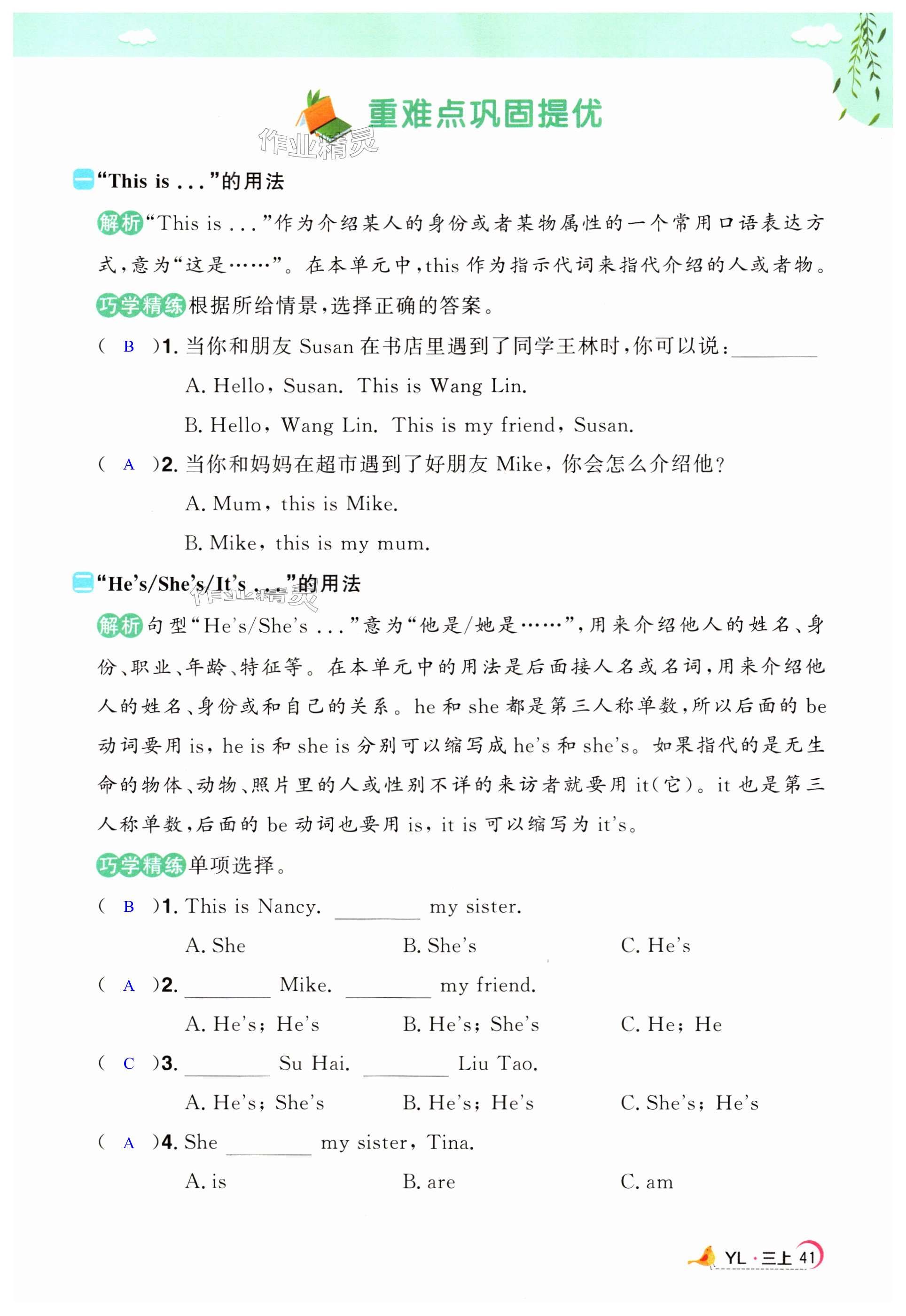 注:目前有些书本章节名称可能整理的还不是很完善,但都是按照顺序排列的,请同学们按照顺序仔细查找。练习册 2024年阳光同学课时优化作业三年级英语上册译林版 答案主要是用来给同学们做完题方便对答案用的,请勿直接抄袭。