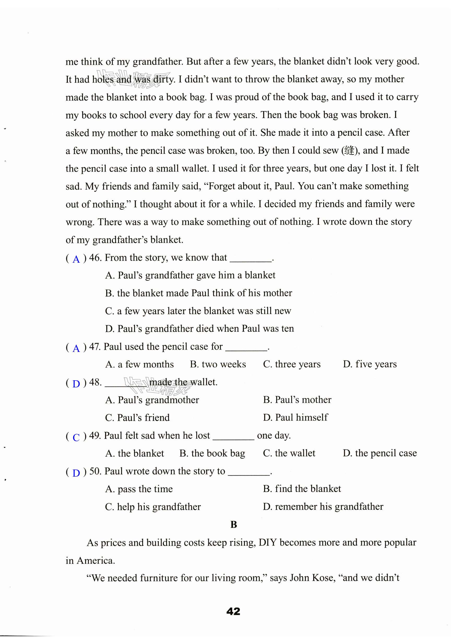 注:目前有些书本章节名称可能整理的还不是很完善,但都是按照顺序排列的,请同学们按照顺序仔细查找。练习册 2024年课课练初中英语活页卷八年级上册译林版 答案主要是用来给同学们做完题方便对答案用的,请勿直接抄袭。