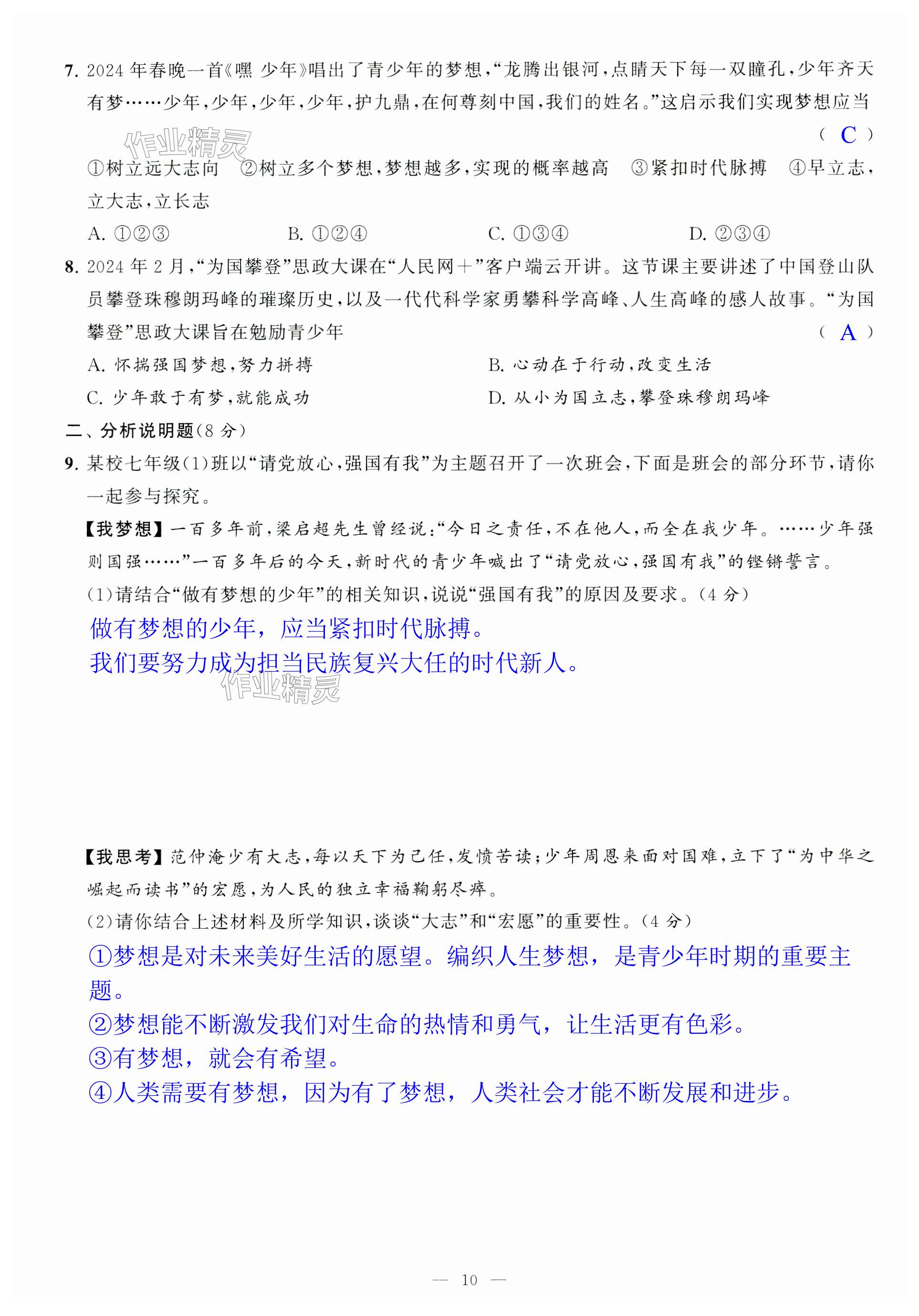 注:目前有些书本章节名称可能整理的还不是很完善,但都是按照顺序排列的,请同学们按照顺序仔细查找。练习册 2024年智慧学习初中学科单元试卷七年级道德与法治上册人教版 答案主要是用来给同学们做完题方便对答案用的,请勿直接抄袭。