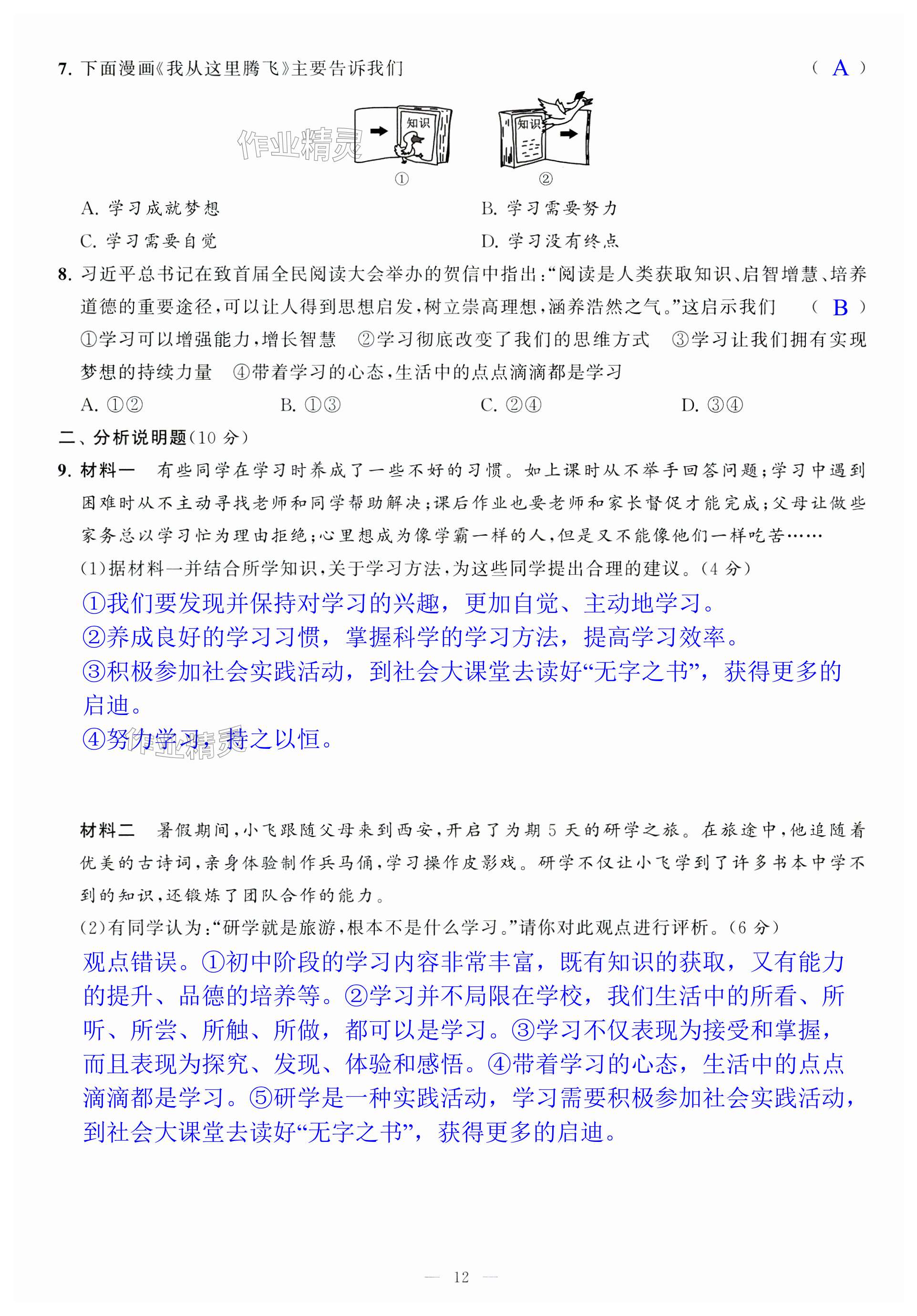 注:目前有些书本章节名称可能整理的还不是很完善,但都是按照顺序排列的,请同学们按照顺序仔细查找。练习册 2024年智慧学习初中学科单元试卷七年级道德与法治上册人教版 答案主要是用来给同学们做完题方便对答案用的,请勿直接抄袭。