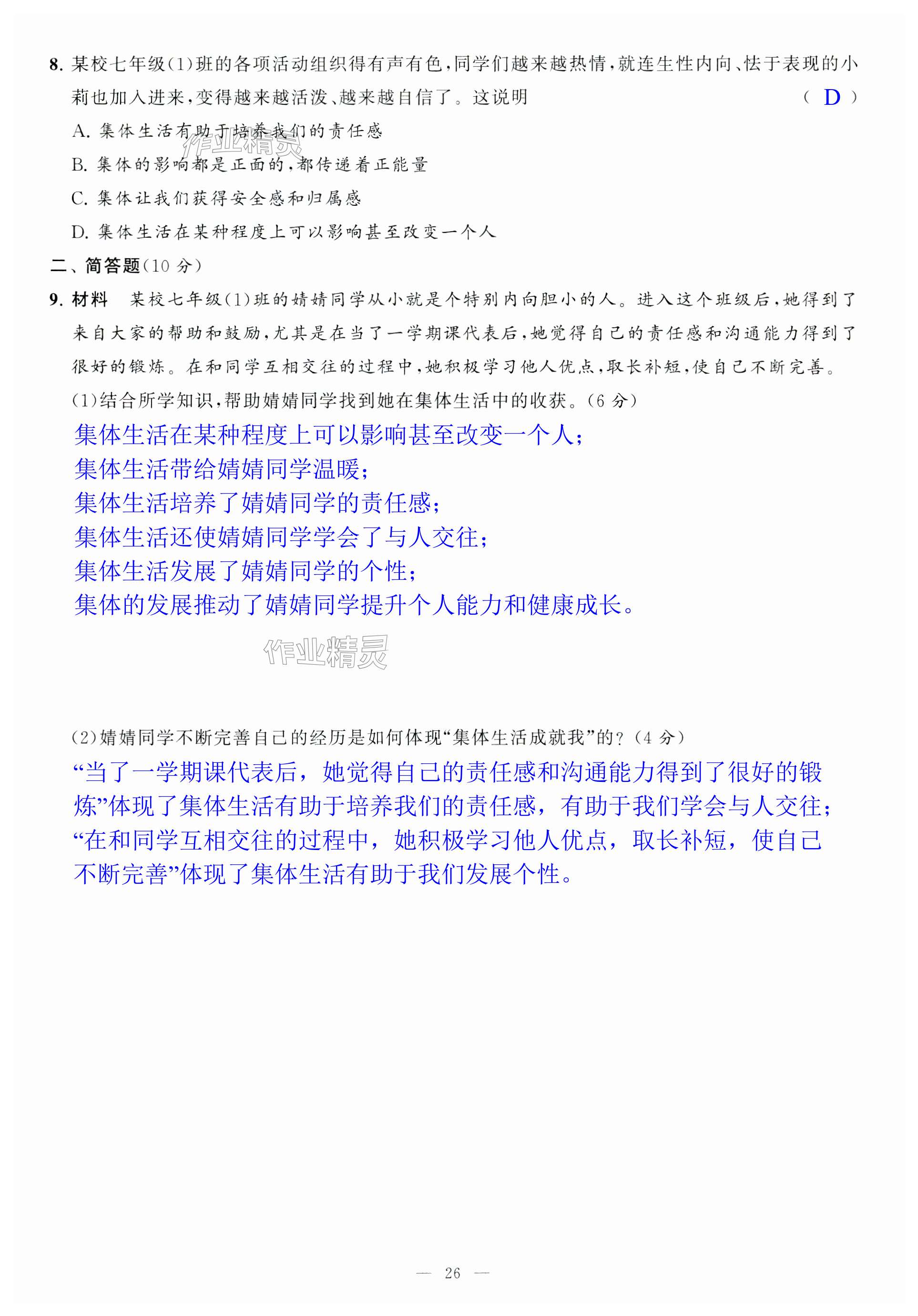 注:目前有些书本章节名称可能整理的还不是很完善,但都是按照顺序排列的,请同学们按照顺序仔细查找。练习册 2024年智慧学习初中学科单元试卷七年级道德与法治上册人教版 答案主要是用来给同学们做完题方便对答案用的,请勿直接抄袭。