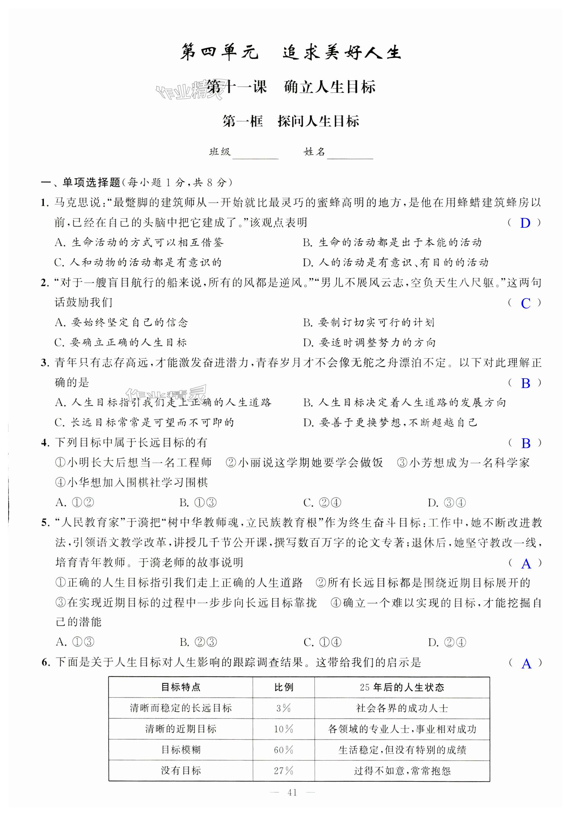 注:目前有些书本章节名称可能整理的还不是很完善,但都是按照顺序排列的,请同学们按照顺序仔细查找。练习册 2024年智慧学习初中学科单元试卷七年级道德与法治上册人教版 答案主要是用来给同学们做完题方便对答案用的,请勿直接抄袭。