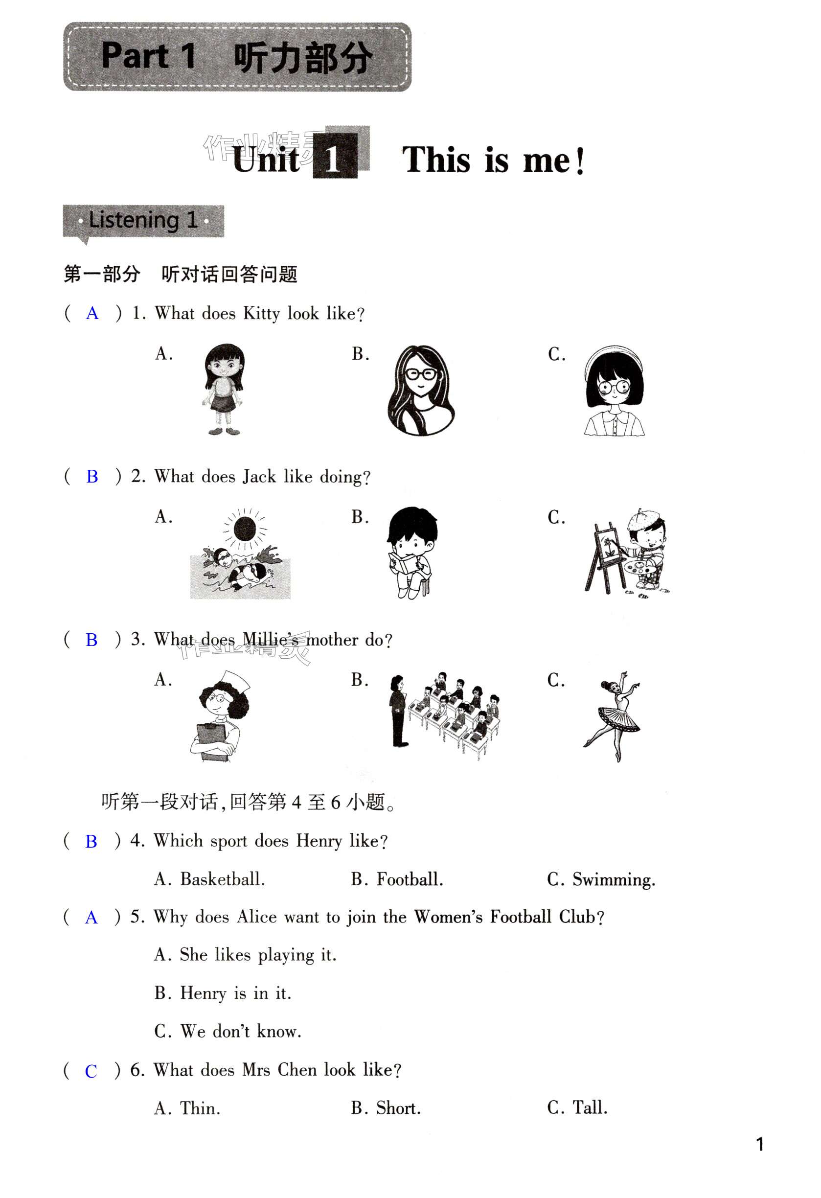 注:目前有些书本章节名称可能整理的还不是很完善,但都是按照顺序排列的,请同学们按照顺序仔细查找。练习册 2024年初中英语听力与阅读七年级英语上册译林版 答案主要是用来给同学们做完题方便对答案用的,请勿直接抄袭。