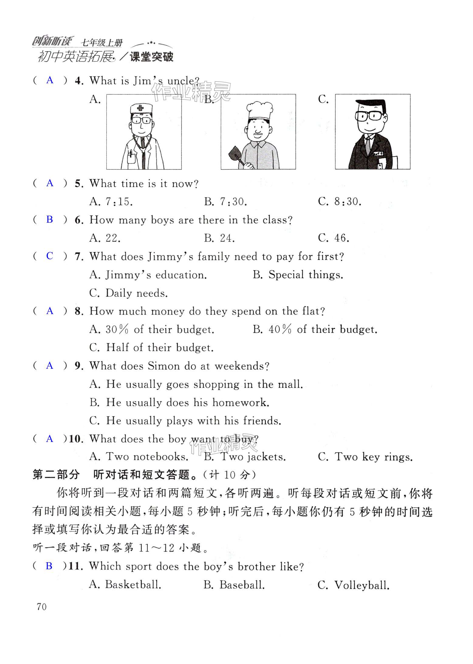注:目前有些书本章节名称可能整理的还不是很完善,但都是按照顺序排列的,请同学们按照顺序仔细查找。练习册 2024年初中英语拓展课堂突破七年级上册译林版 答案主要是用来给同学们做完题方便对答案用的,请勿直接抄袭。