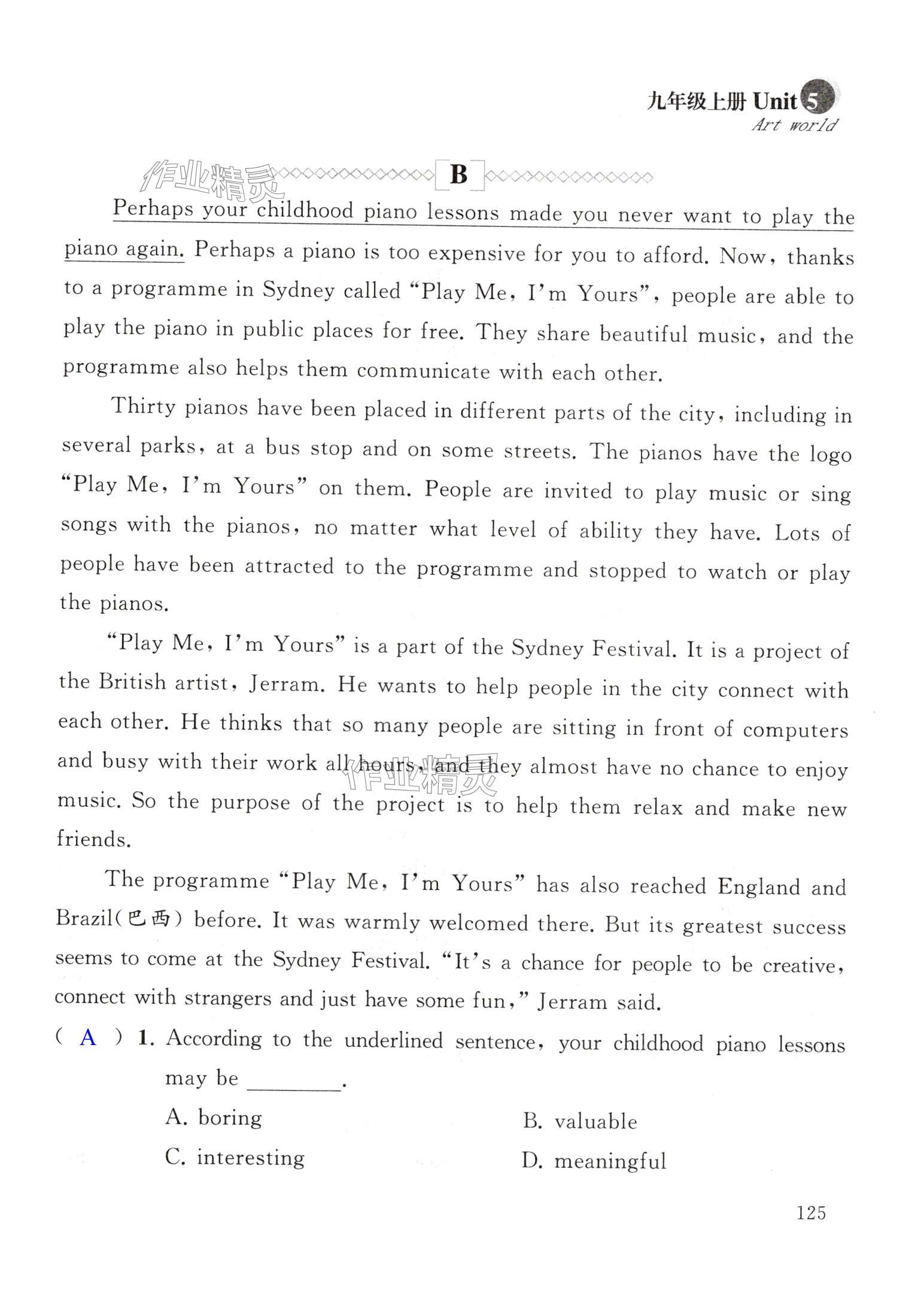 注:目前有些书本章节名称可能整理的还不是很完善,但都是按照顺序排列的,请同学们按照顺序仔细查找。练习册 2024年初中英语拓展课堂突破九年级全一册译林版 答案主要是用来给同学们做完题方便对答案用的,请勿直接抄袭。