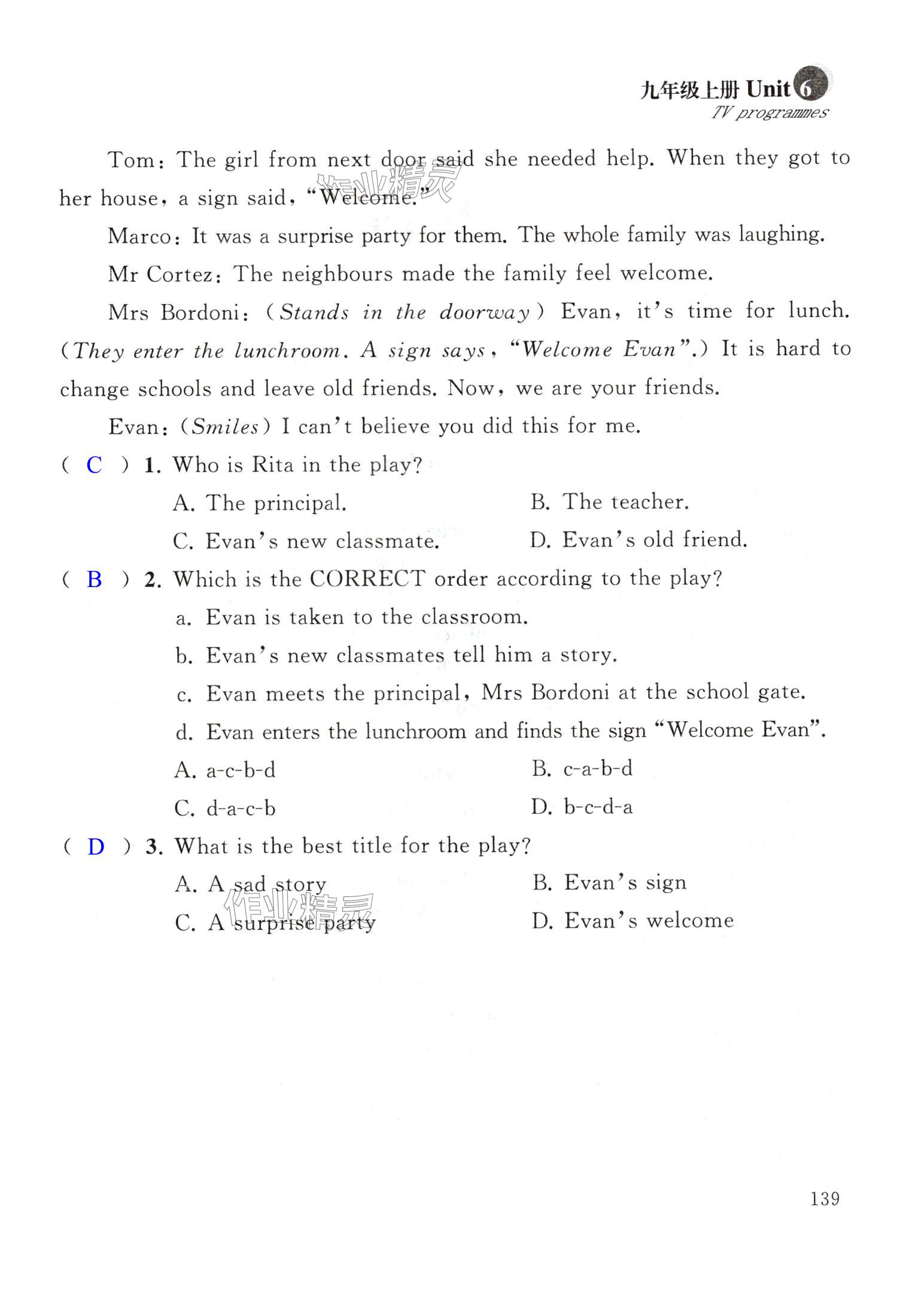 注:目前有些书本章节名称可能整理的还不是很完善,但都是按照顺序排列的,请同学们按照顺序仔细查找。练习册 2024年初中英语拓展课堂突破九年级全一册译林版 答案主要是用来给同学们做完题方便对答案用的,请勿直接抄袭。