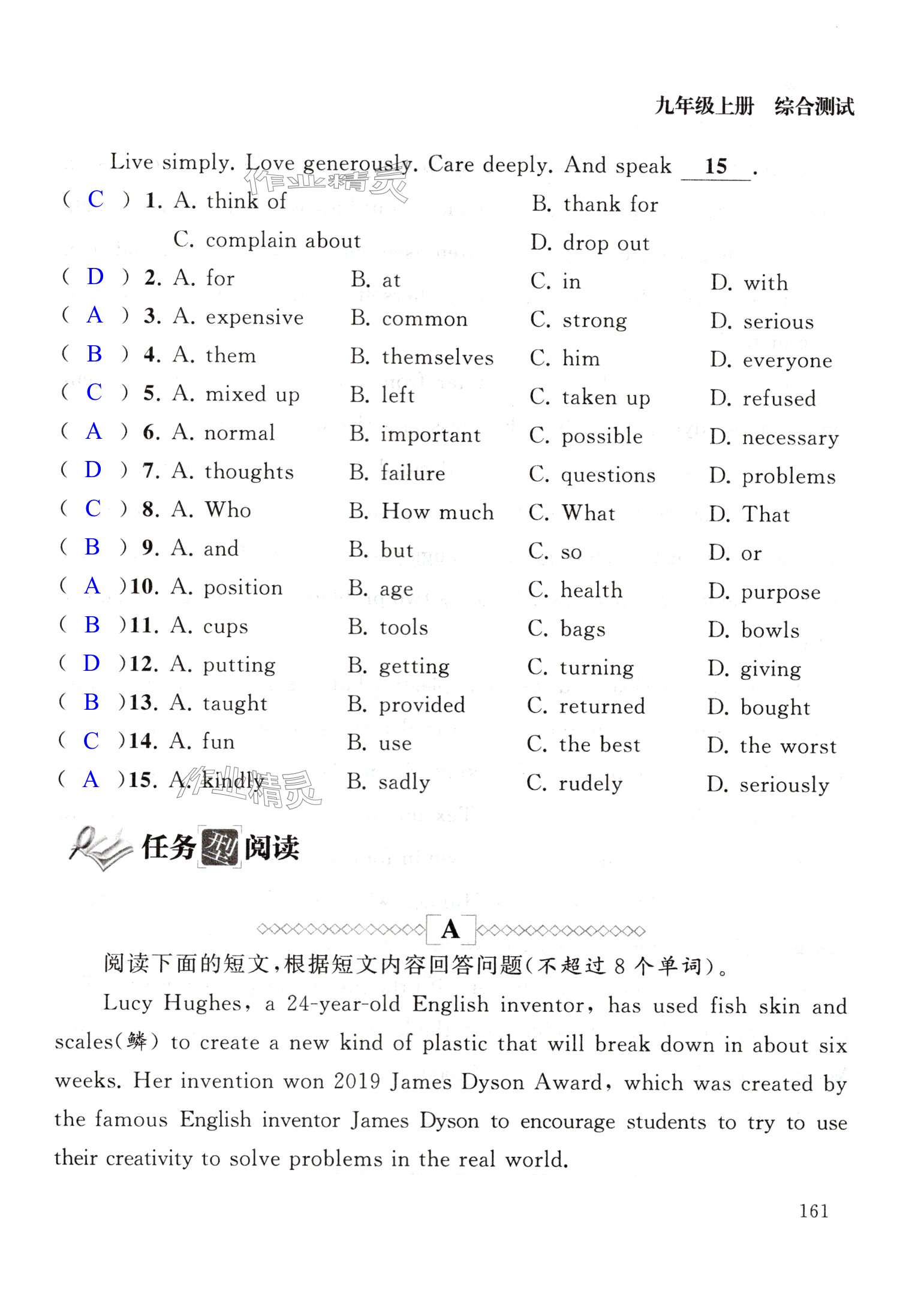 注:目前有些书本章节名称可能整理的还不是很完善,但都是按照顺序排列的,请同学们按照顺序仔细查找。练习册 2024年初中英语拓展课堂突破九年级全一册译林版 答案主要是用来给同学们做完题方便对答案用的,请勿直接抄袭。