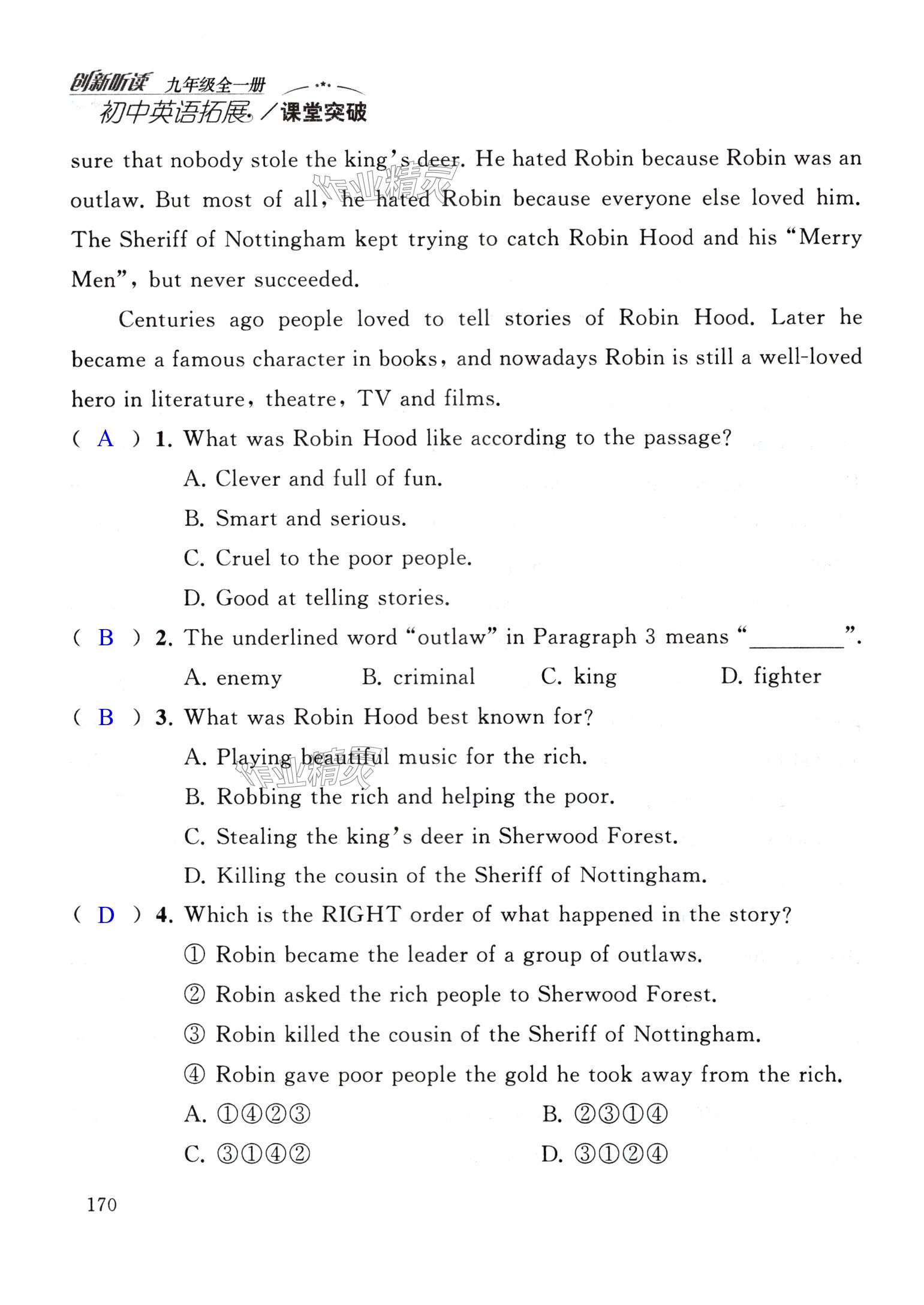 注:目前有些书本章节名称可能整理的还不是很完善,但都是按照顺序排列的,请同学们按照顺序仔细查找。练习册 2024年初中英语拓展课堂突破九年级全一册译林版 答案主要是用来给同学们做完题方便对答案用的,请勿直接抄袭。