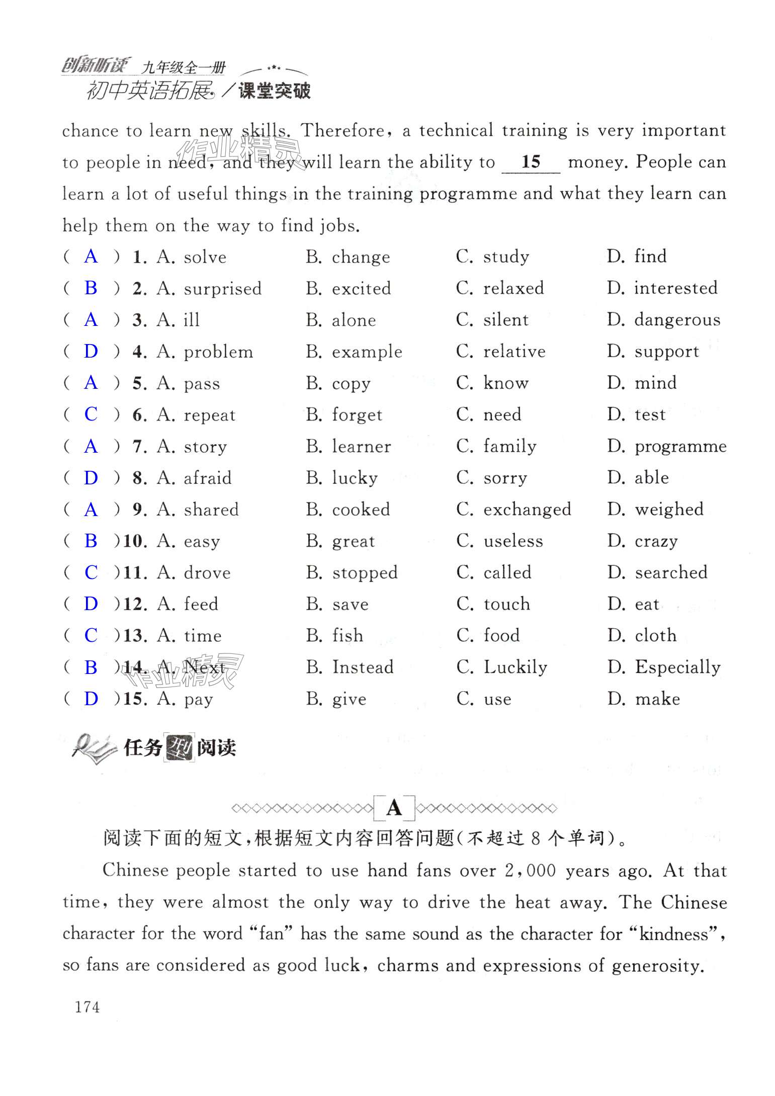 注:目前有些书本章节名称可能整理的还不是很完善,但都是按照顺序排列的,请同学们按照顺序仔细查找。练习册 2024年初中英语拓展课堂突破九年级全一册译林版 答案主要是用来给同学们做完题方便对答案用的,请勿直接抄袭。
